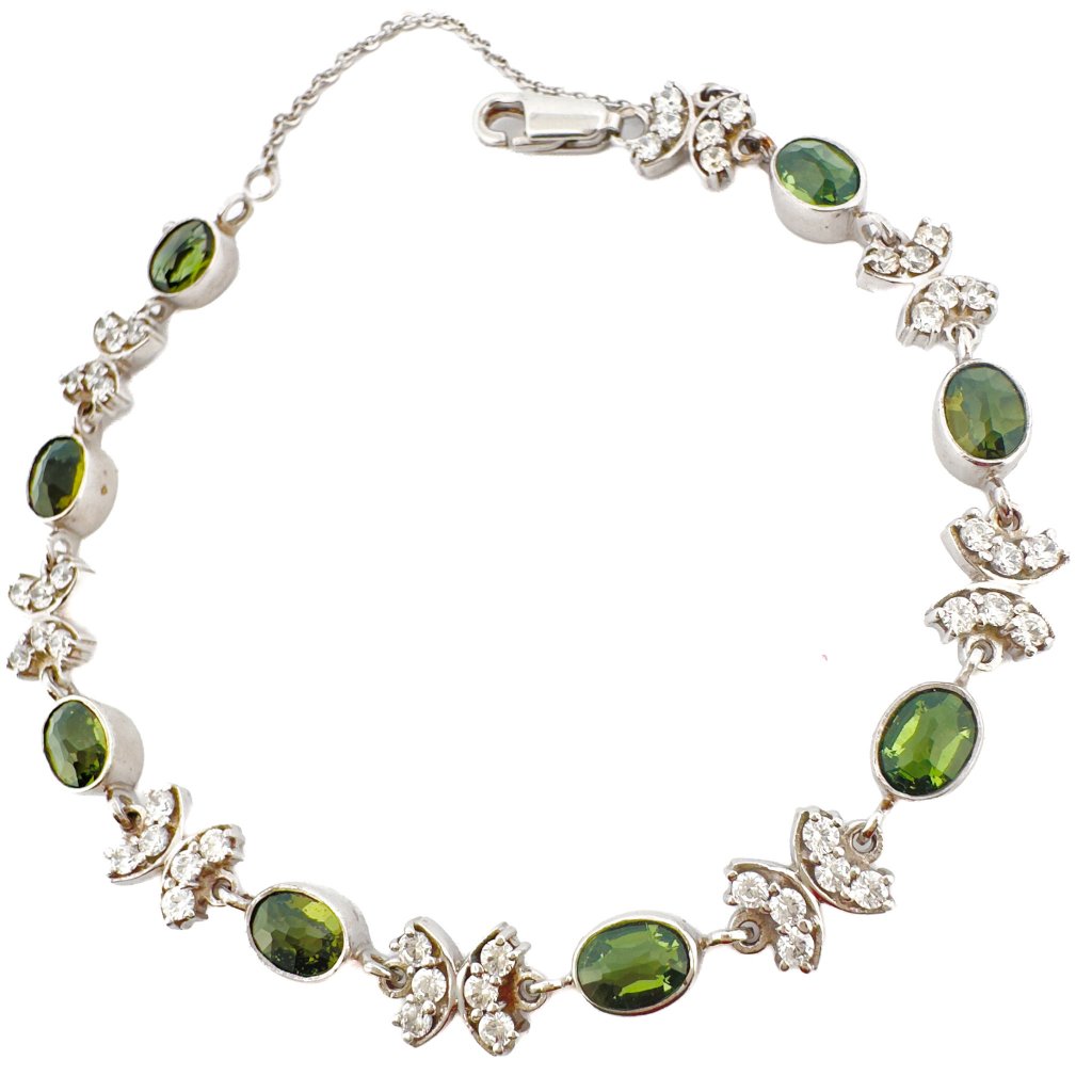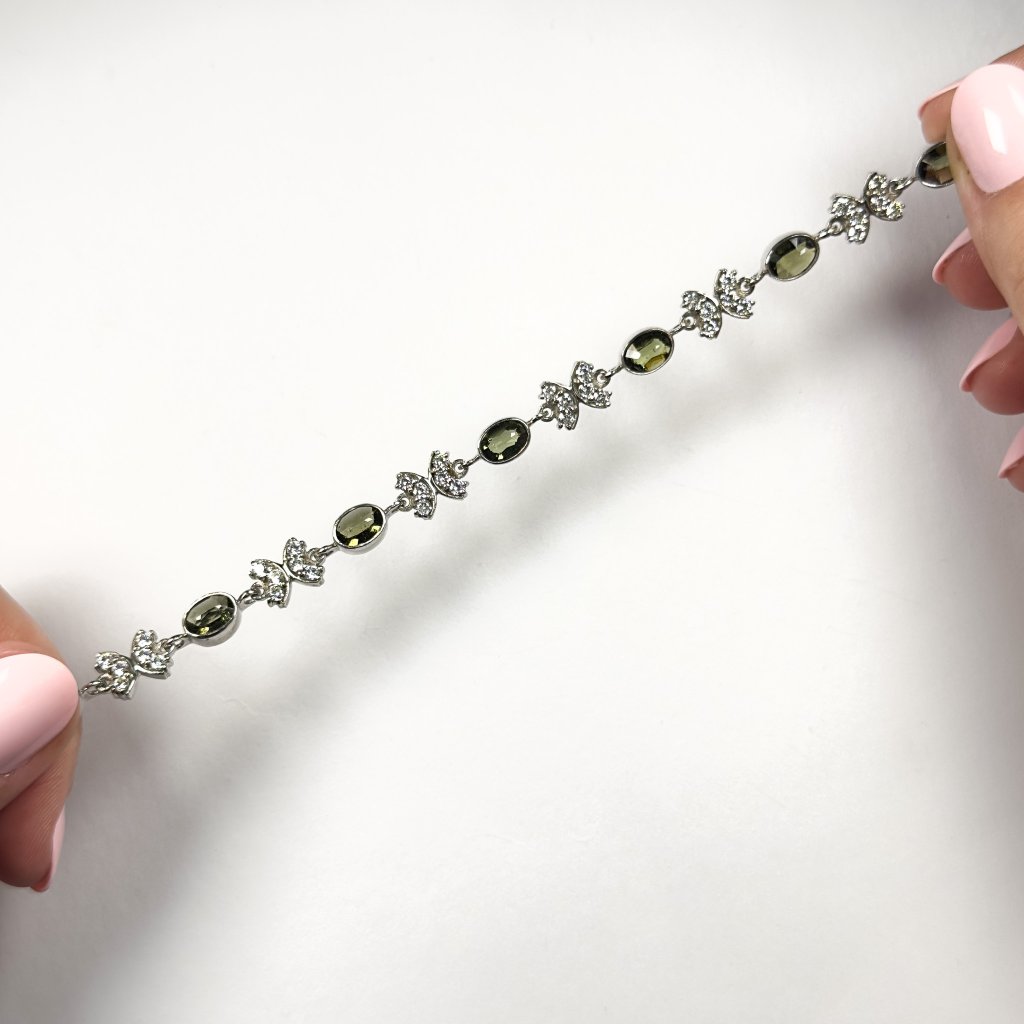Stříbrný náramek s vltavíny a zirkony 2000155770009