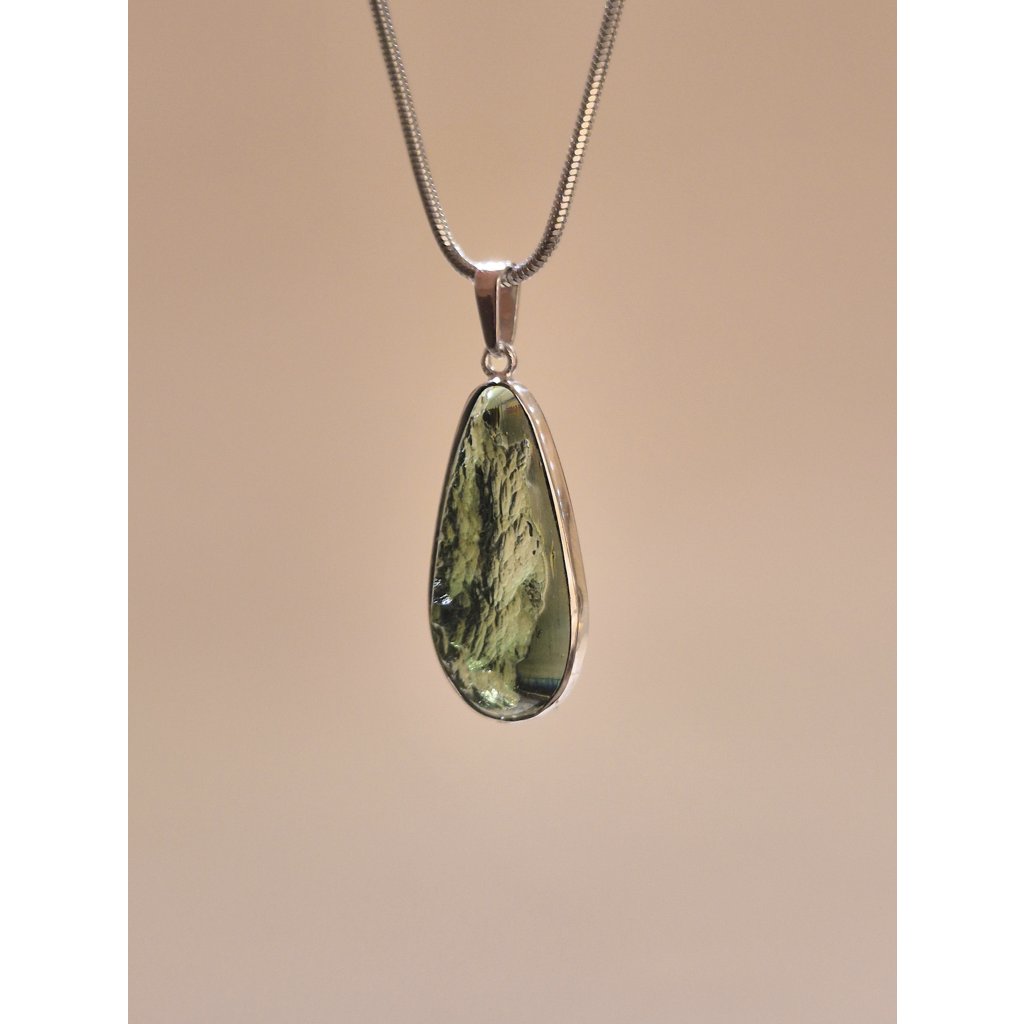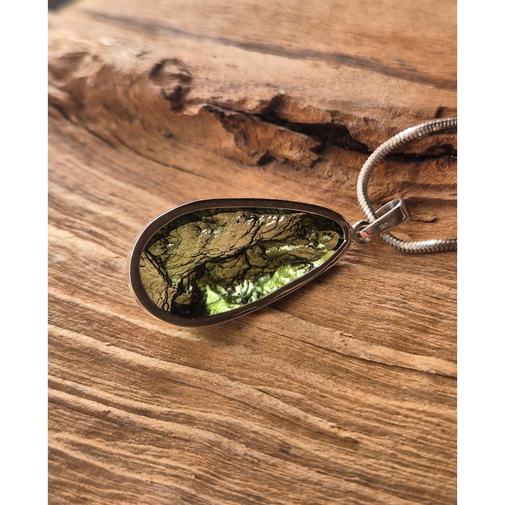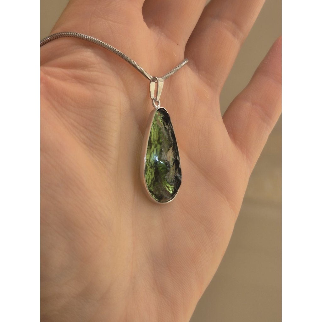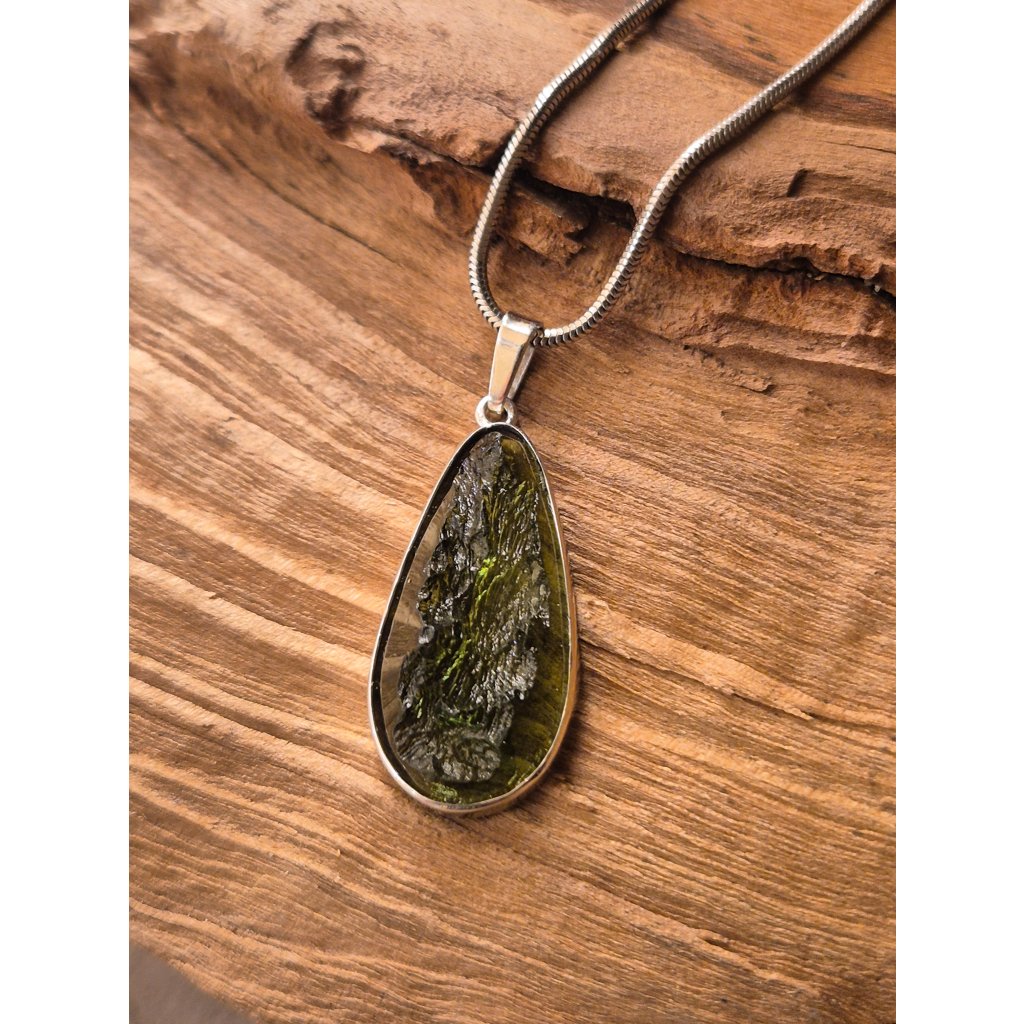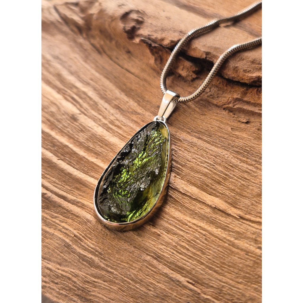 Přírodní kouzlo a moderní zpracování – to je Váš nový stříbrný přívěsek s vltavínem. Polobroušený povrch dodává kameni hloubku a jiskru.