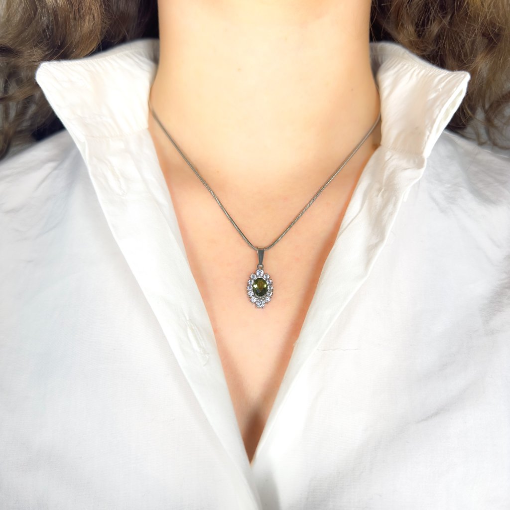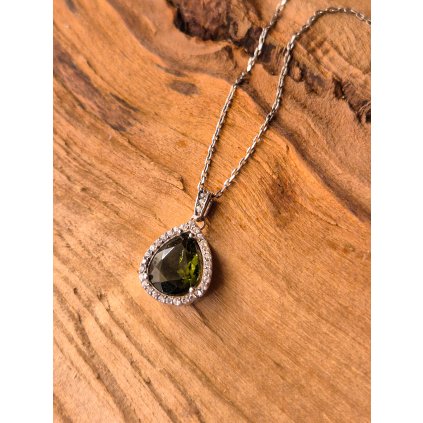 Stříbrný přívěsek s broušeným vltavínem a zirkony 2000168700000