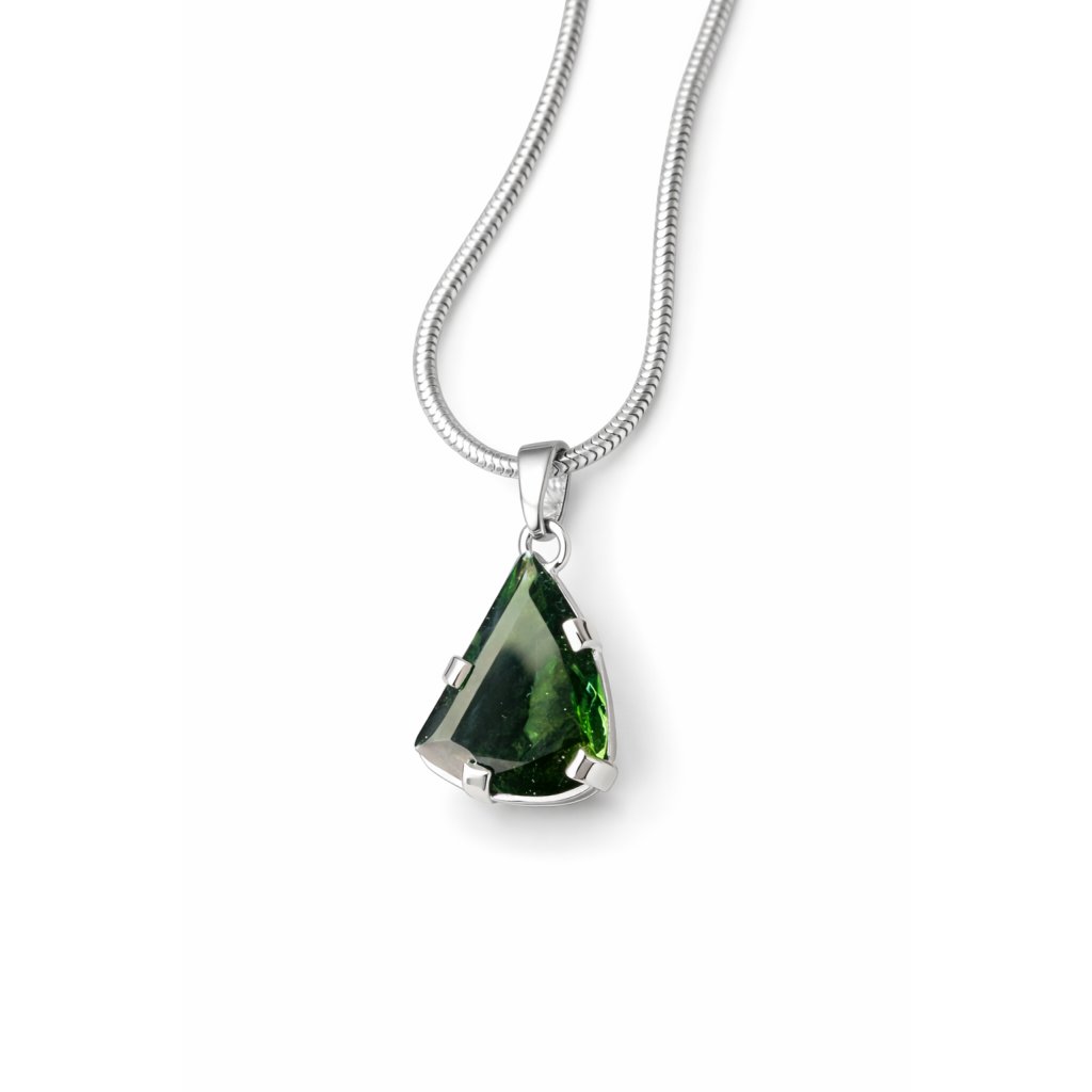 Stříbrný přívěsek s broušeným vltavínem P31 0026