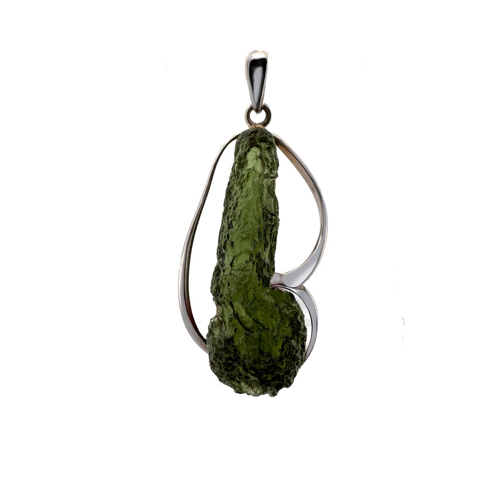 Stříbrný přívěsek s nebroušeným vltavínem P37 0225