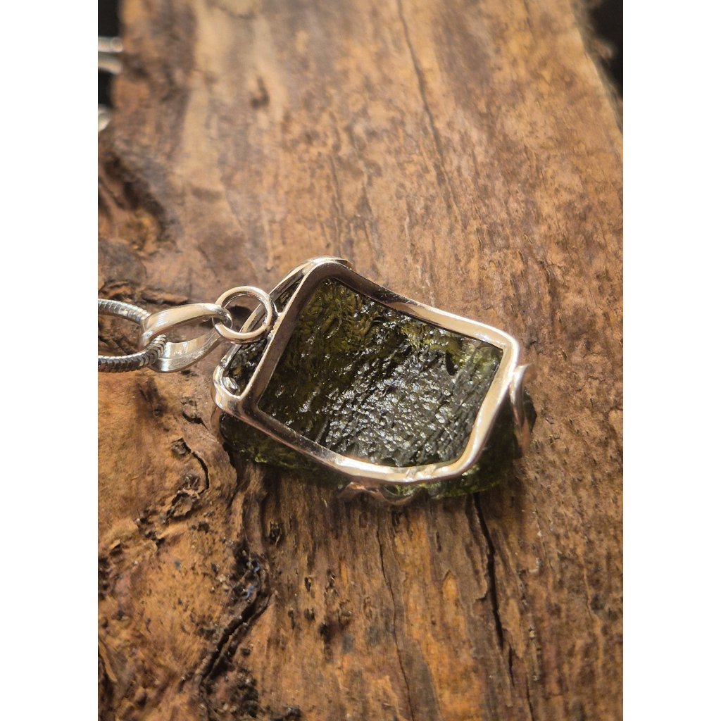 Stříbrný přívěsek s neopracovaným vltavínem P37 0222