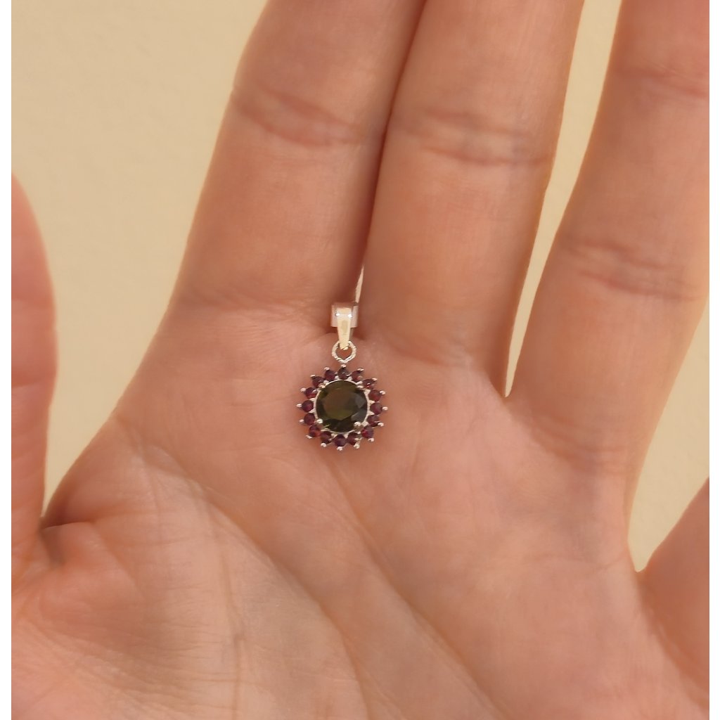 Stříbrný přívěsek s vltavínem a granáty P31 0055