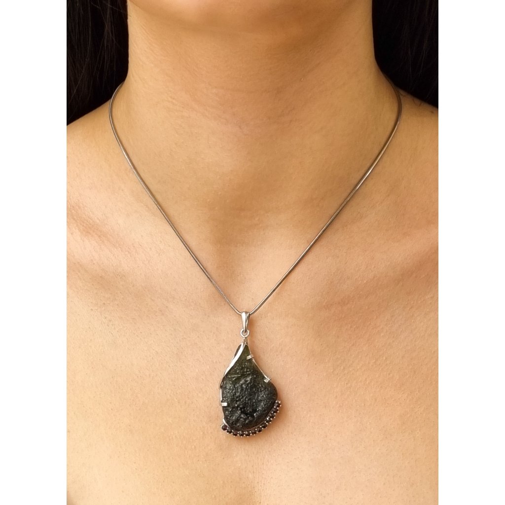 Stříbrný přívěsek s vltavínem a granáty P37 0185