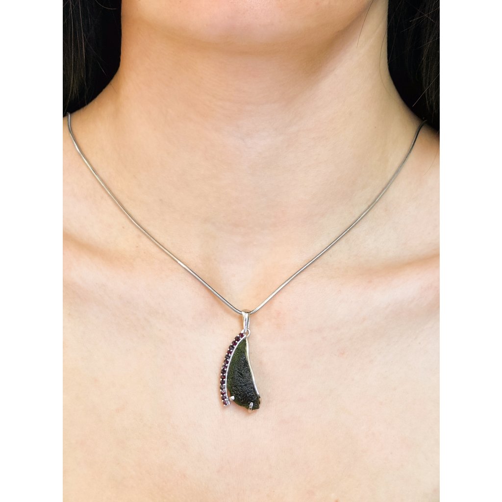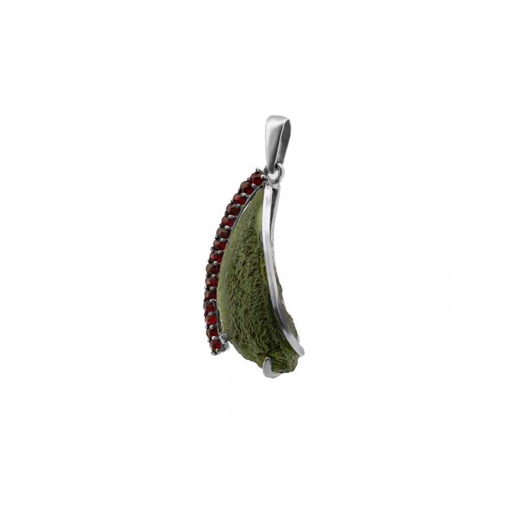 Stříbrný přívěsek s vltavínem a granáty P37 0186