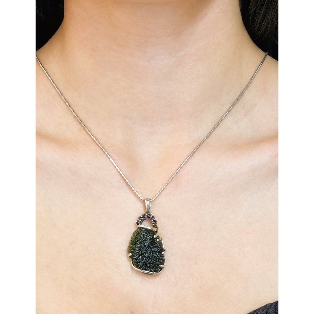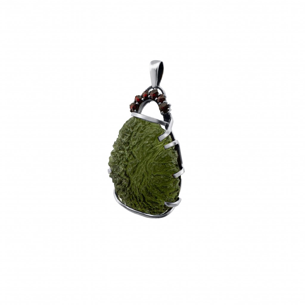 Stříbrný přívěsek s vltavínem a granáty P37 0187