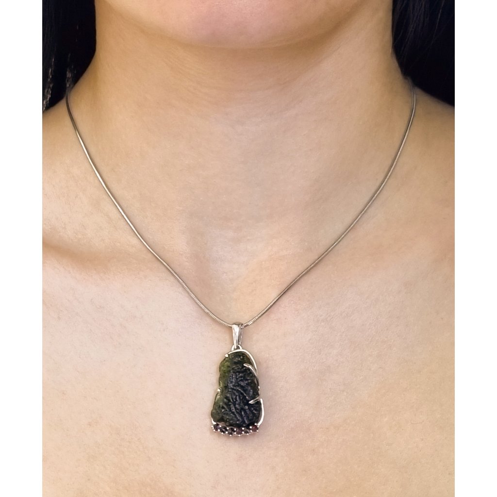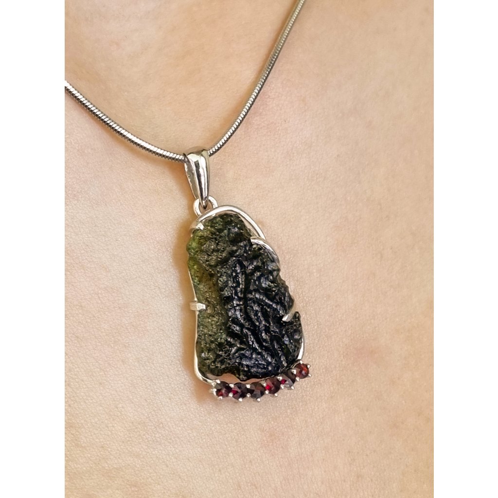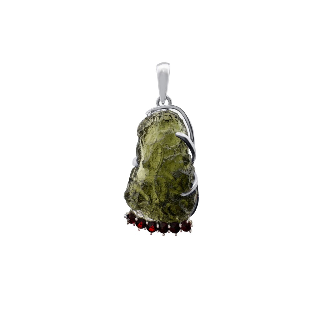 Stříbrný přívěsek s vltavínem a granáty P37 0189