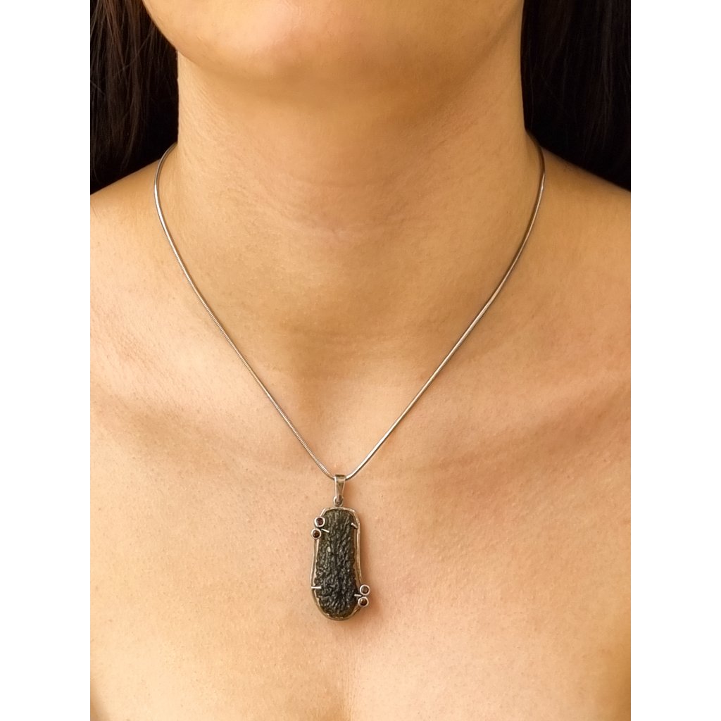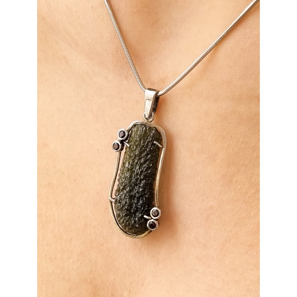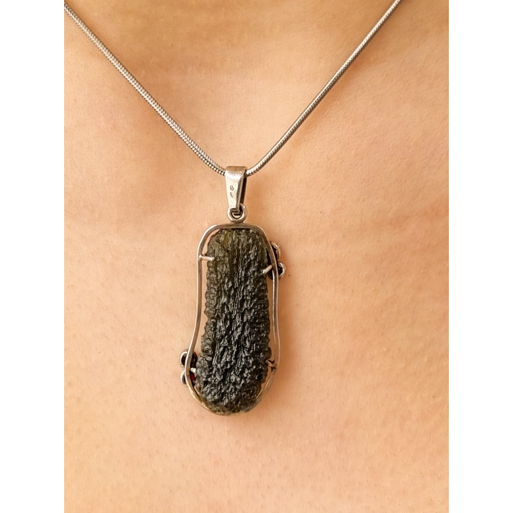 Stříbrný přívěsek s vltavínem a granáty P37 0191