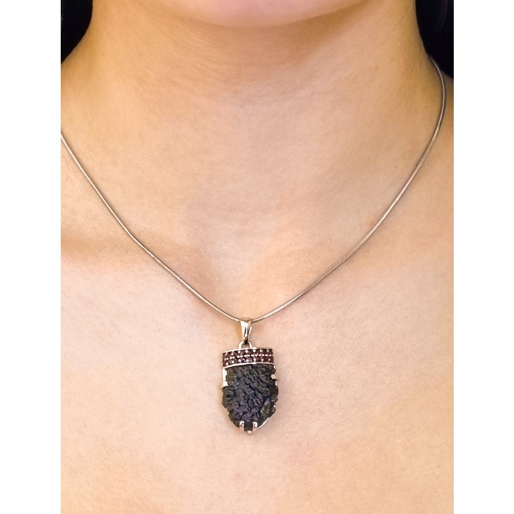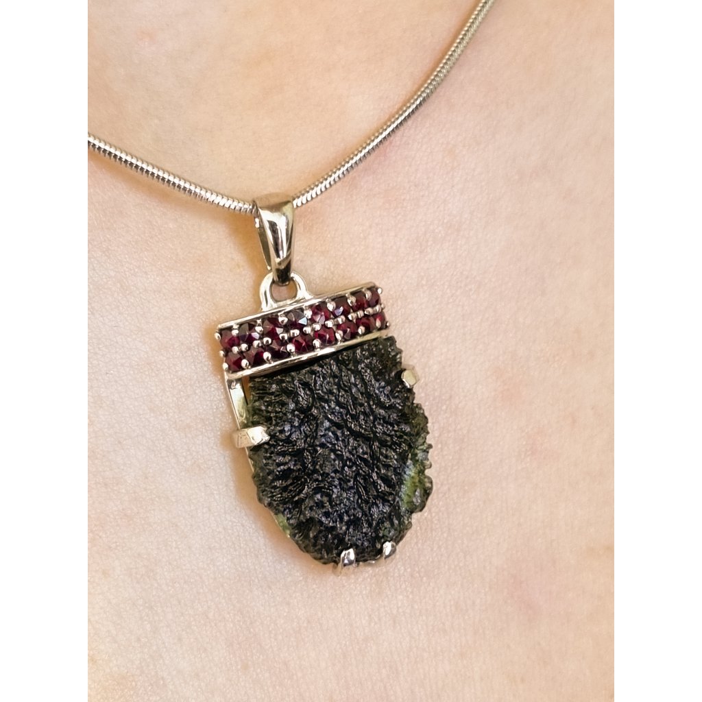 Stříbrný přívěsek s vltavínem a granáty P37 0196
