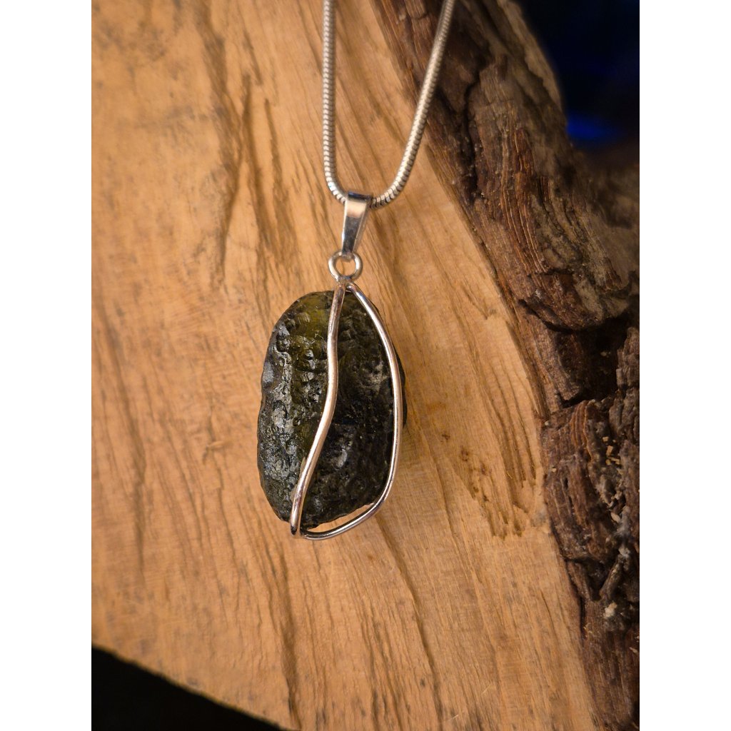 Tento stříbrný šperk je oslavou divokosti a jednoduchosti. Vltavín v surové podobě nikdy nepřestane přitahovat pozornost.