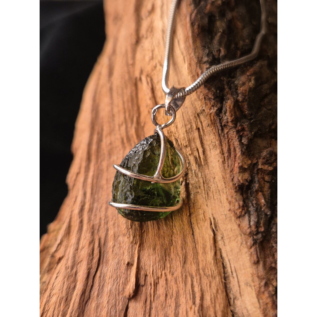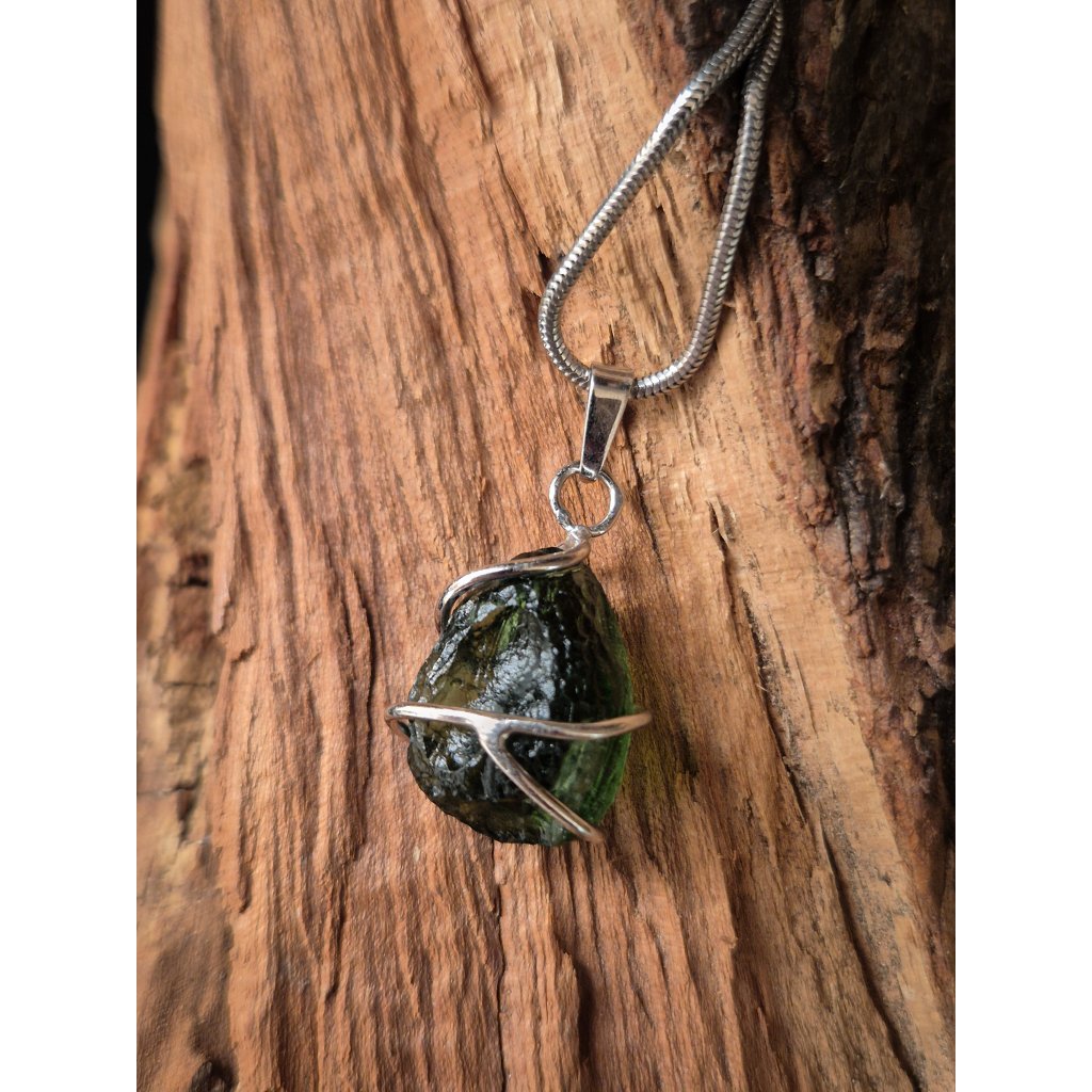 Stříbrné uchycení zvýrazní krásnou strukturu neopracovaného vltavínu. Každý pohled odhalí novou rovinu jeho výjimečnosti.