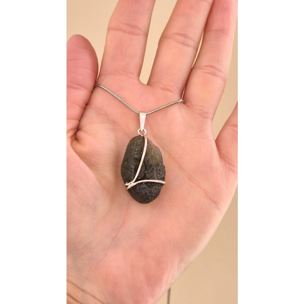 Unikátní ručně vyrobený Přívěsek ze stříbra s vltavínem, který okouzlí svou jemností a jedinečností. Tento šperk je ideální pro zdobení vašeho outfitu a přidání nádechu originality.