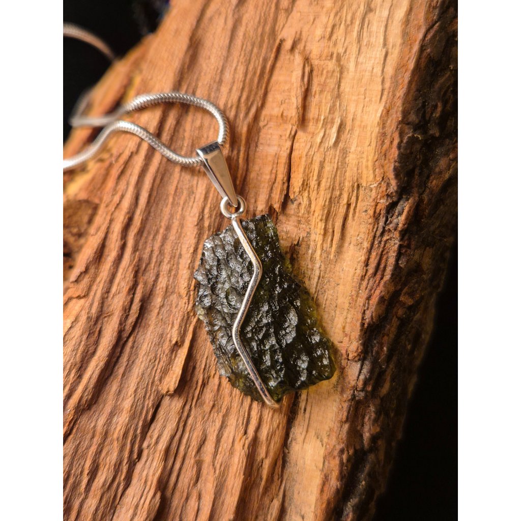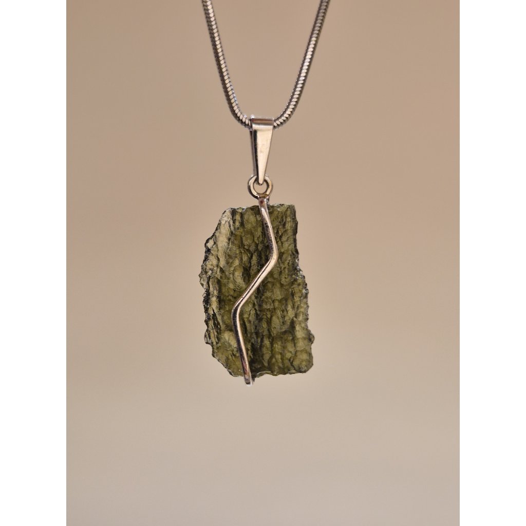 Stříbrné uchycení zvýrazní krásnou strukturu neopracovaného vltavínu. Každý pohled odhalí novou rovinu jeho výjimečnosti.