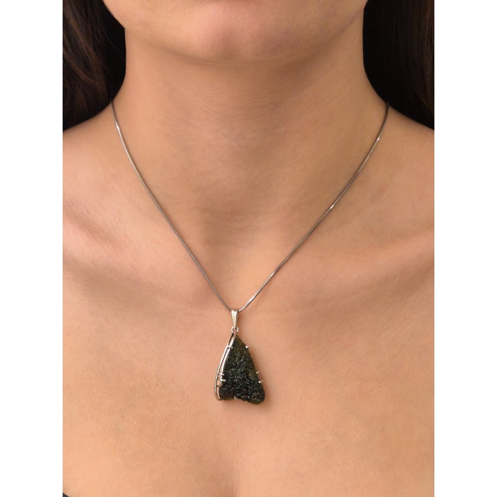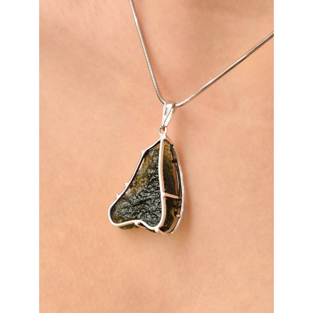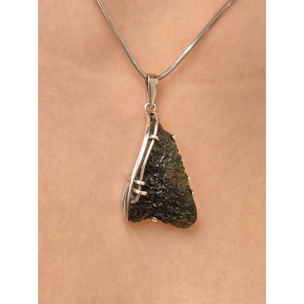 Unikátní přívěsek s přírodním vltavínem, který upoutá svou elegancí. Fascinující vltavín, který zaujme na první pohled… Originální design z ČR, dokonalý kousek pro každý speciální moment.