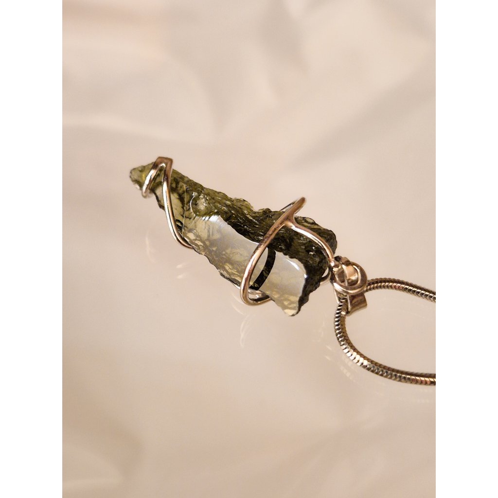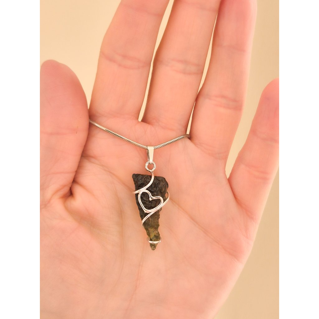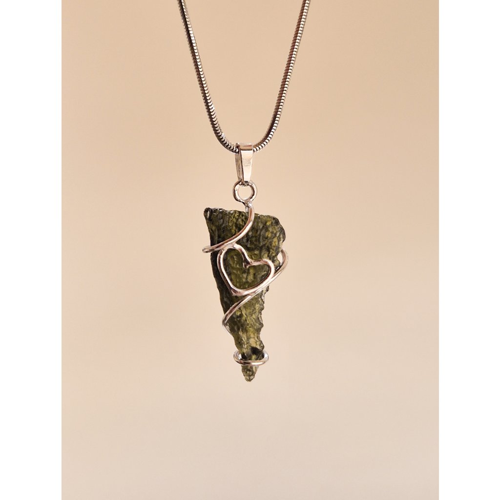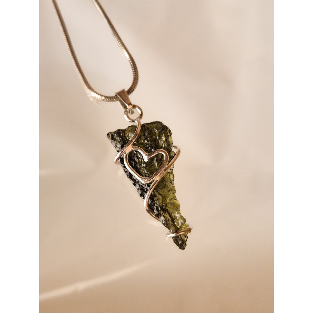 Nebroušený vltavín – surová energie hvězd v něžném tanci lesku stříbrného srdce.