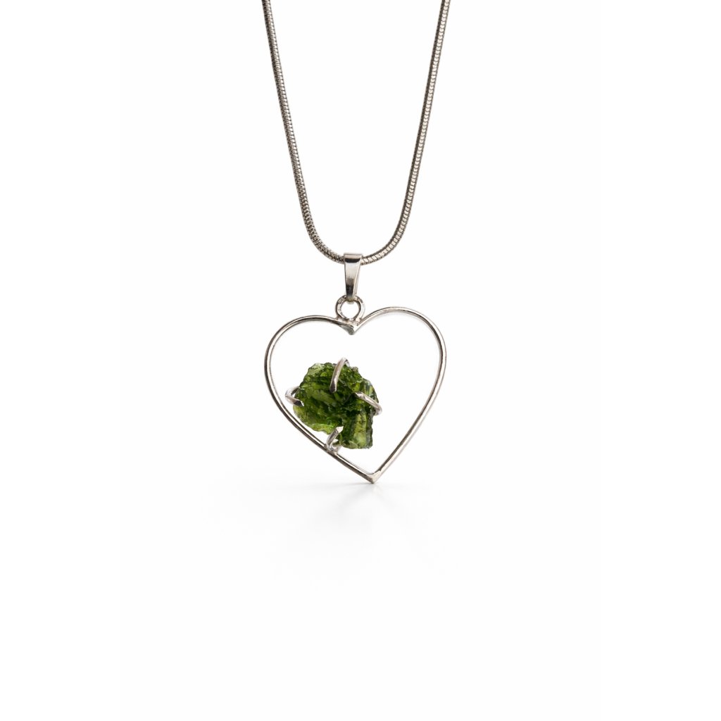 Jemné stříbro, surová krása vltavínu a tvar srdce. Dokonalá harmonie přírody.