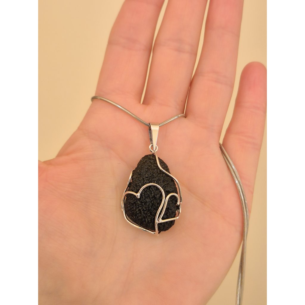 Stříbrný přívěsek s vltavínem s motivem srdce 2000371210006