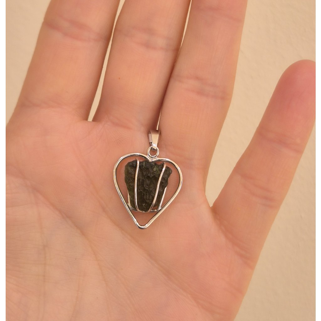 Stříbrný přívěsek s vltavínem srdce 37 0363