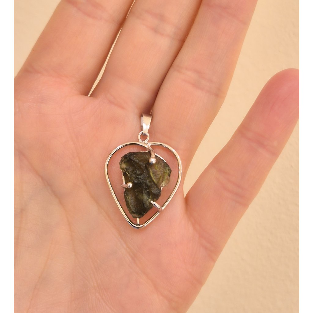 Stříbrný přívěsek s vltavínem srdce 37 0369