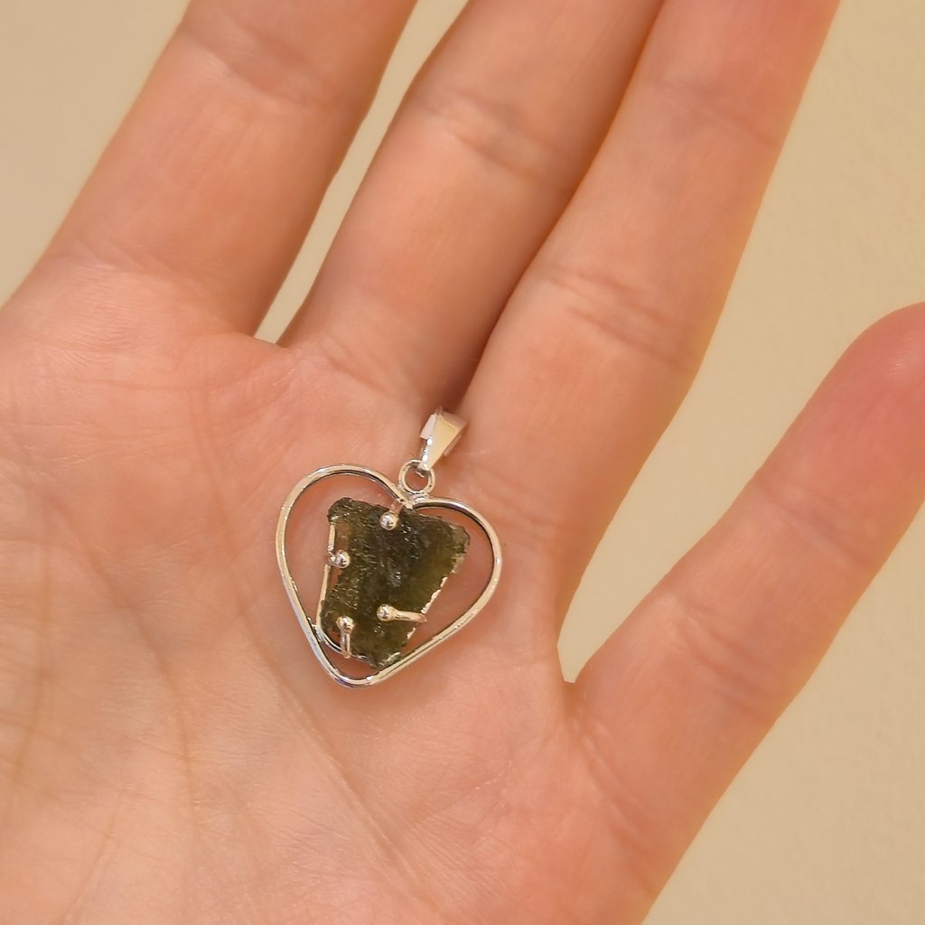 Stříbrný přívěsek s vltavínem srdce 37 0370