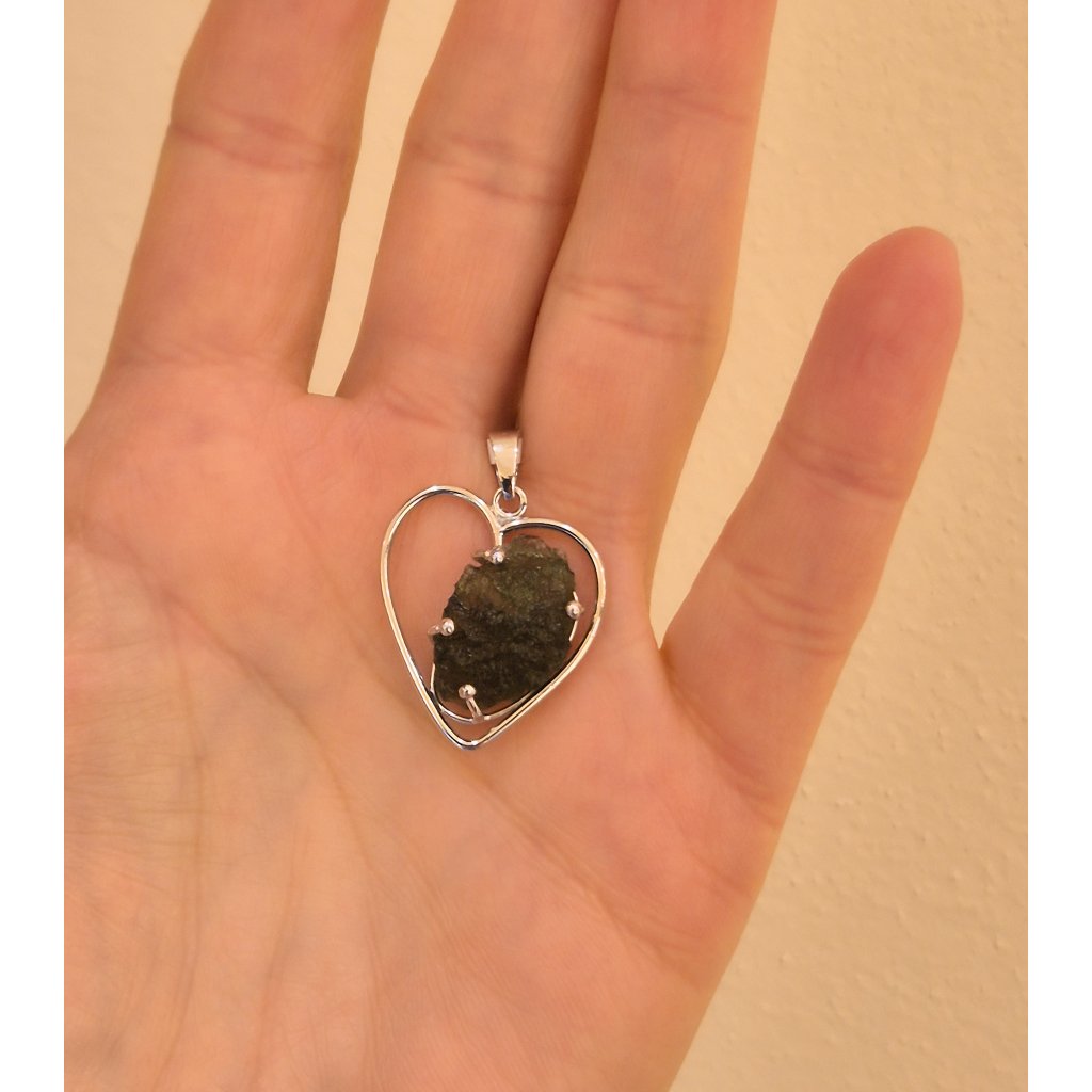 Stříbrný přívěsek s vltavínem srdce 37 0380