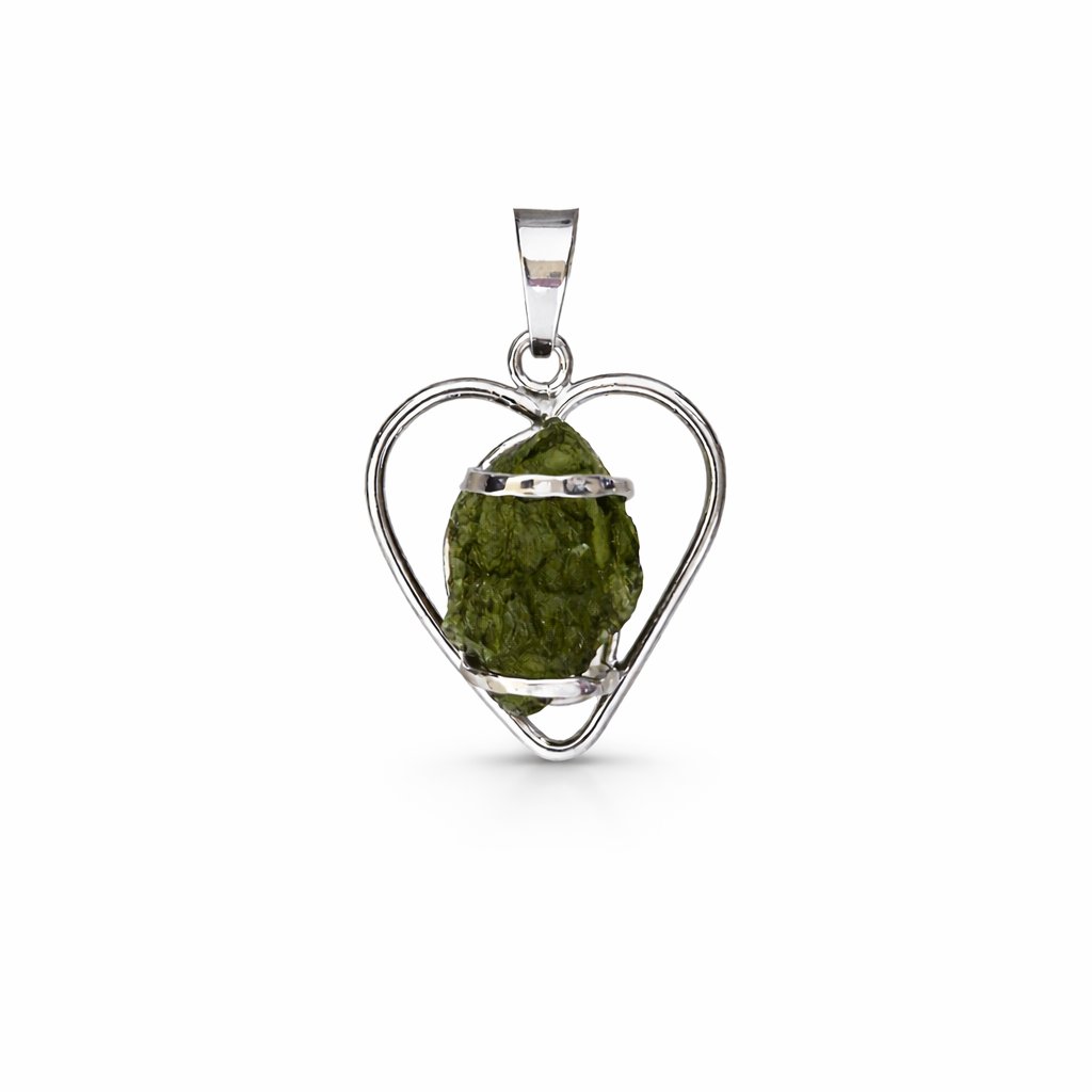 Stříbrný přívěsek s vltavínem srdce 37 0381