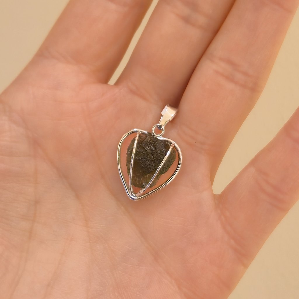 Stříbrný přívěsek s vltavínem srdce 37 0383