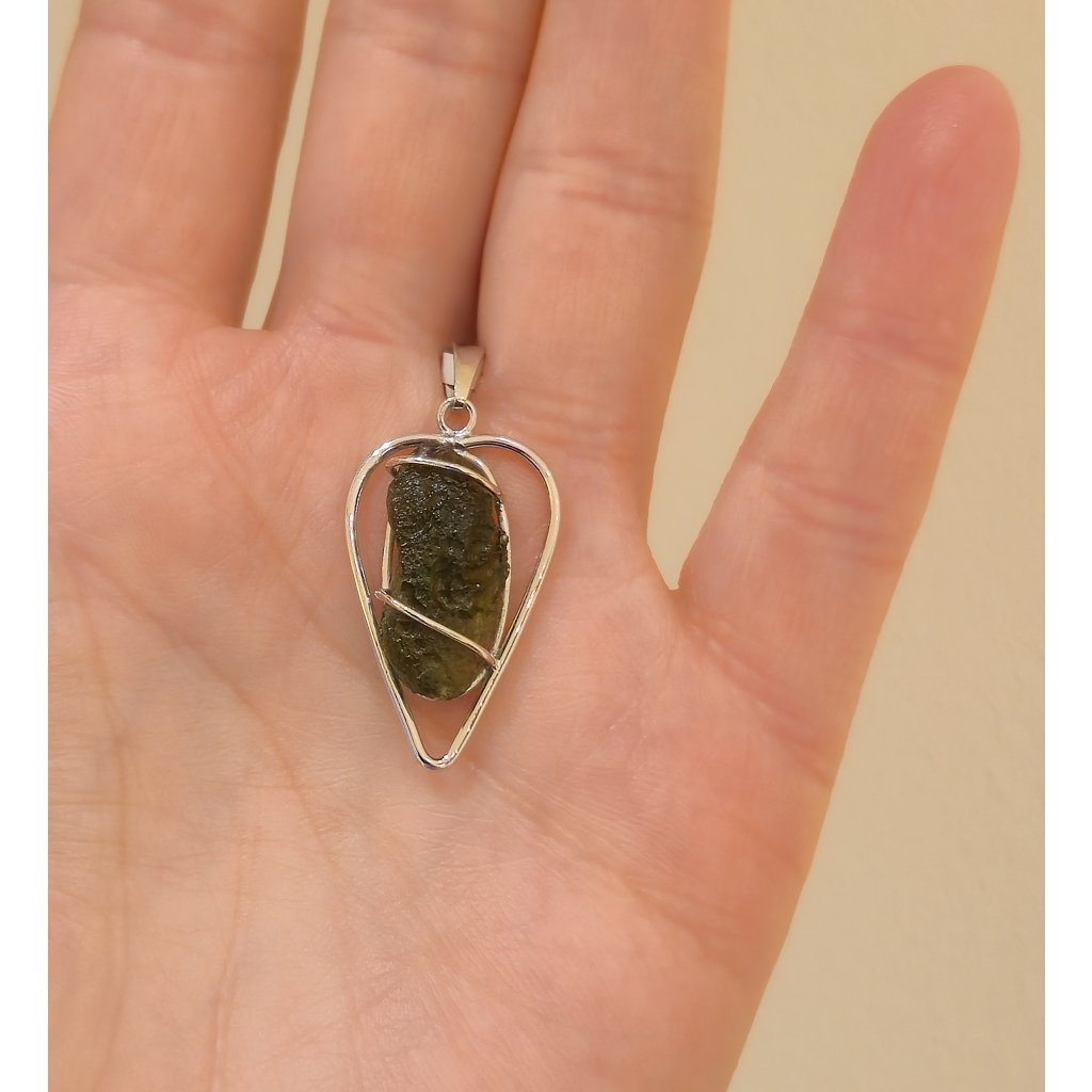 Stříbrný přívěsek s vltavínem srdce 37 0384