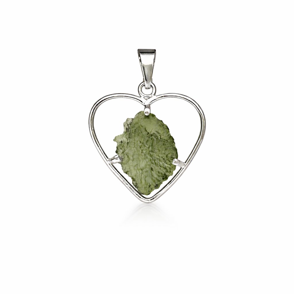 Stříbrný přívěsek s vltavínem srdce 37 0387