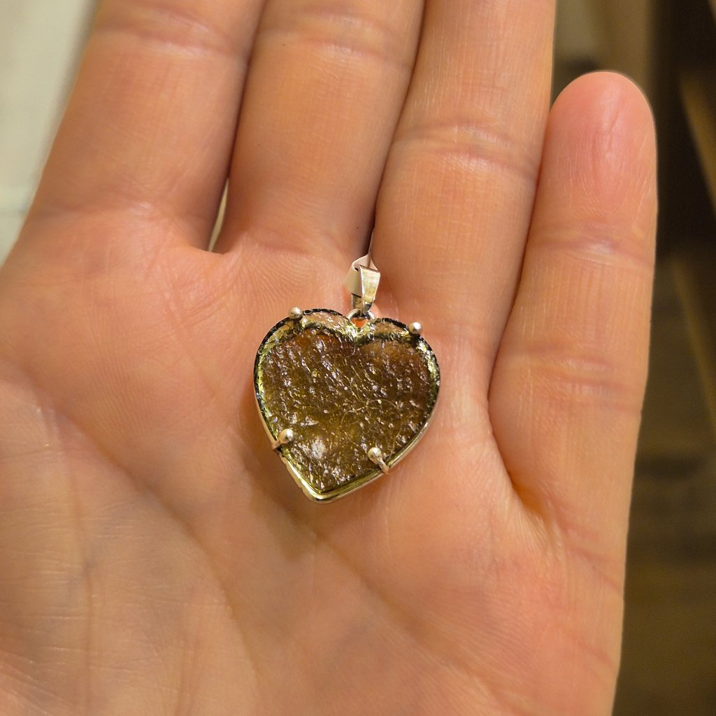 Stříbrný přívěsek s vltavínem srdce 37 0392