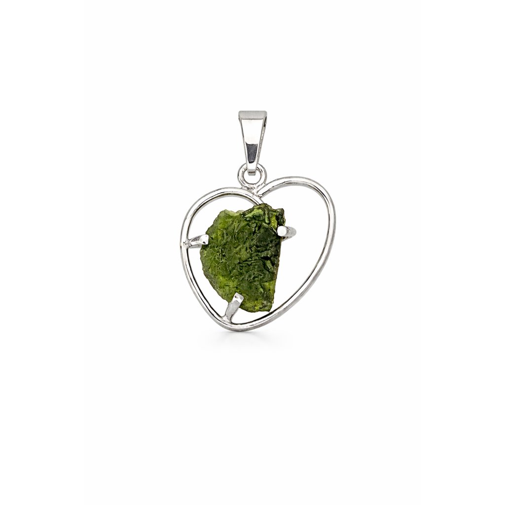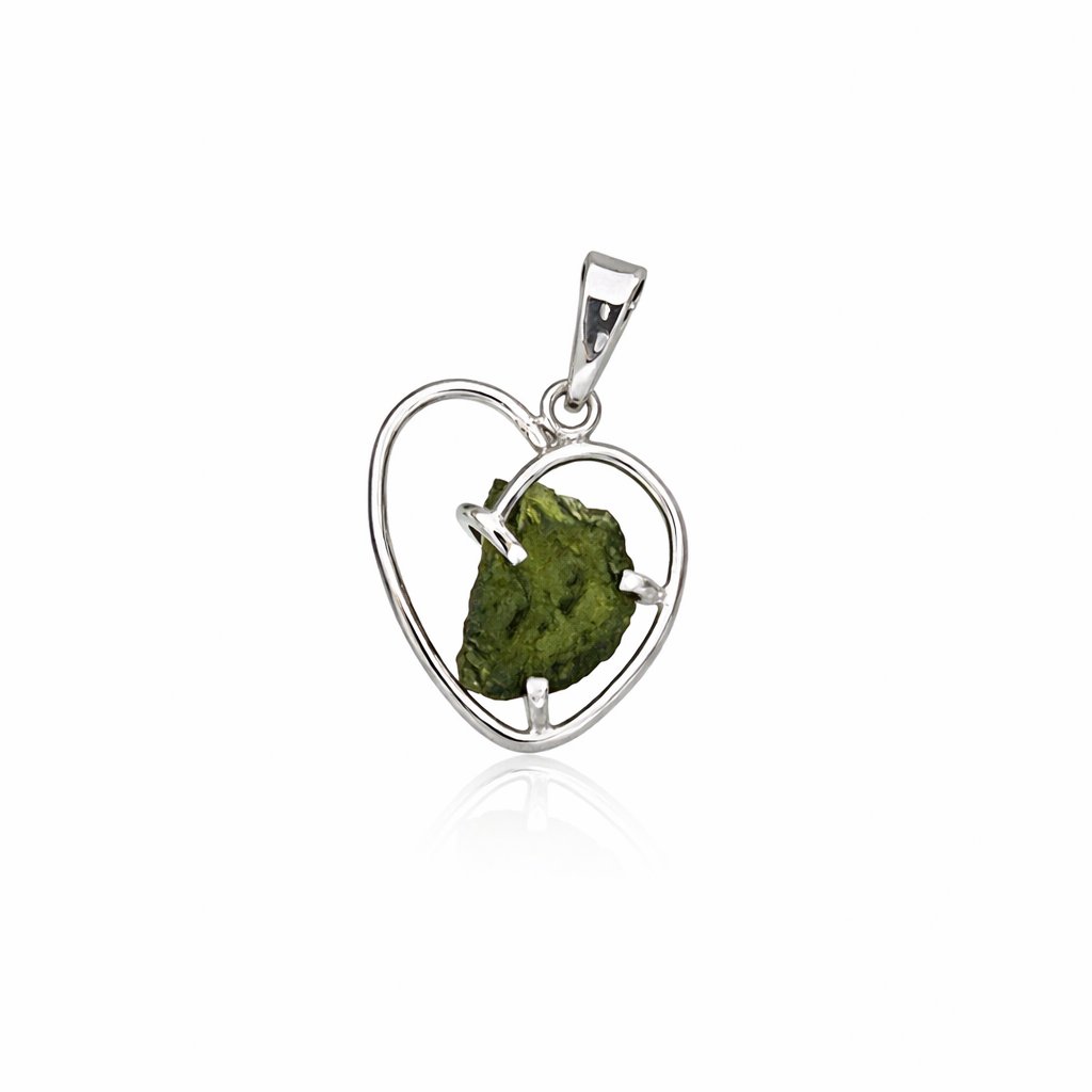 Stříbrný přívěsek s vltavínem srdce P37 0348