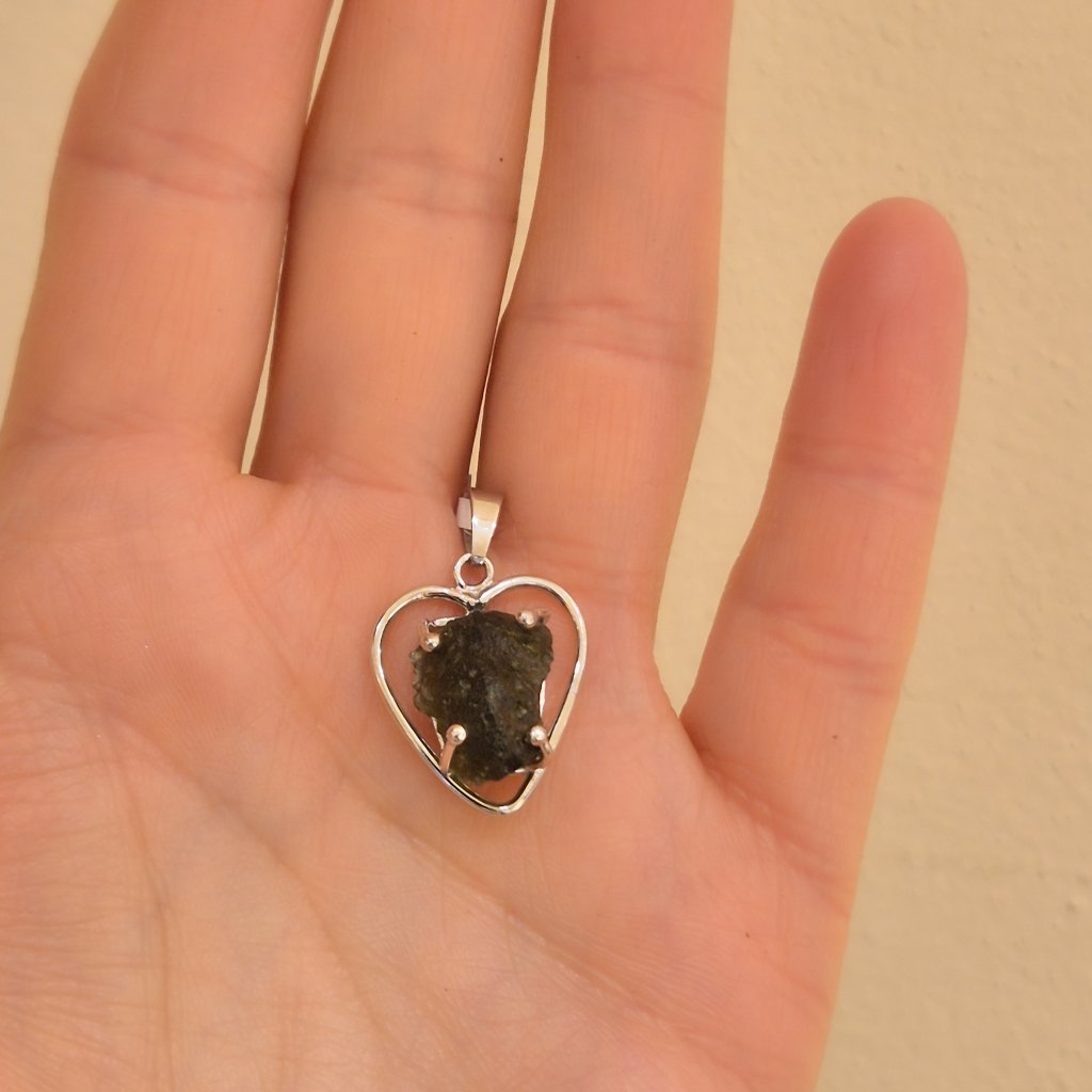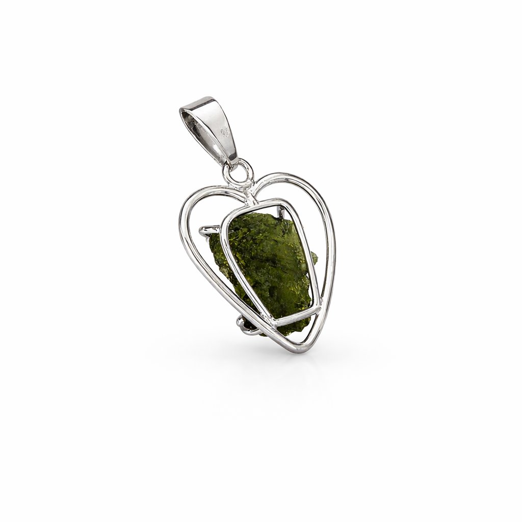 Stříbrný přívěsek s vltavínem srdce P37 0356