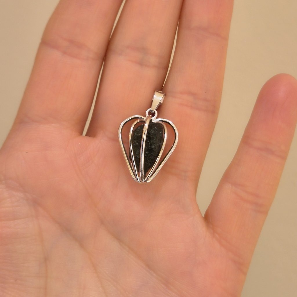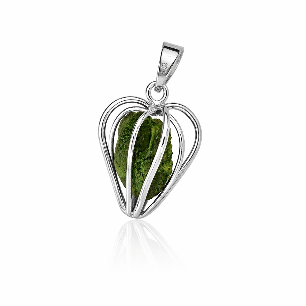 Stříbrný přívěsek s vltavínem srdce P37 0358