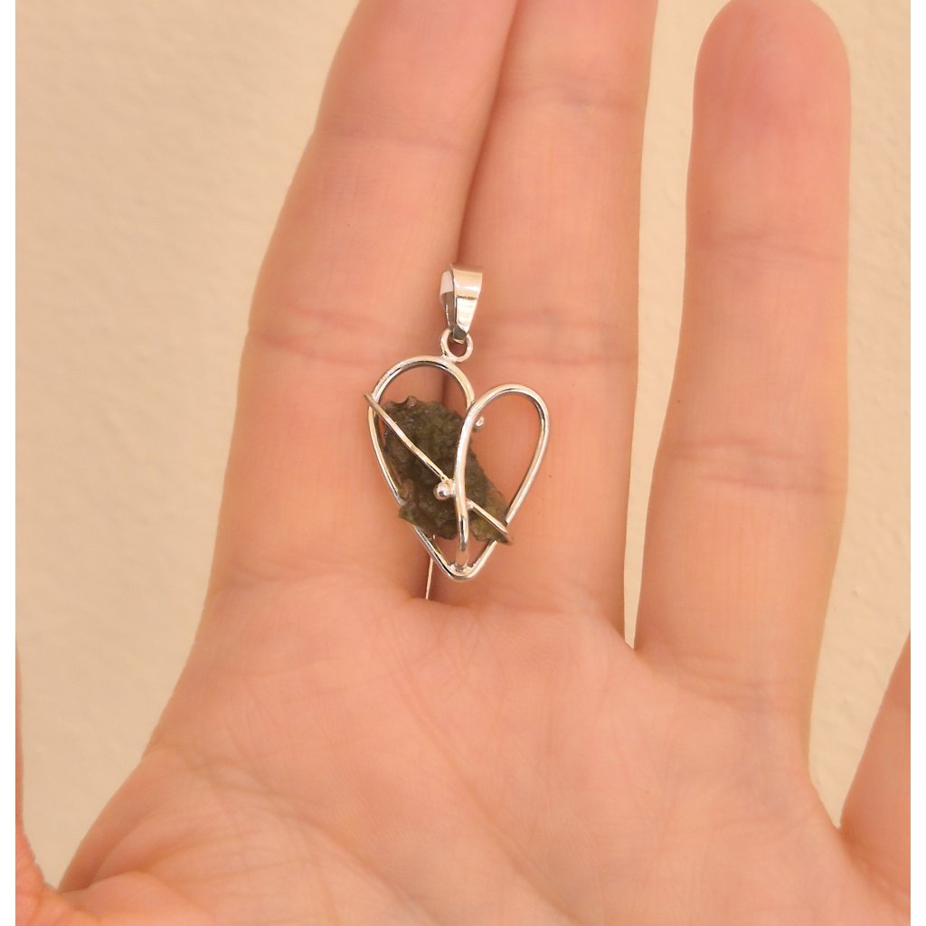 Stříbrný přívěsek s vltavínem srdce P37 0359