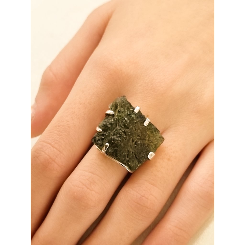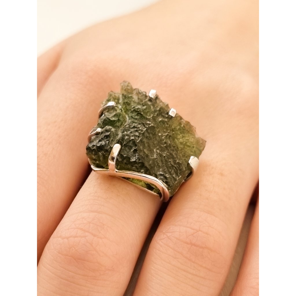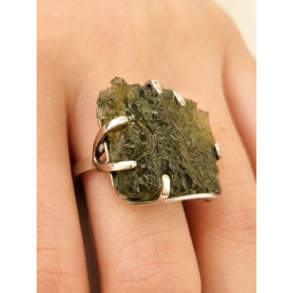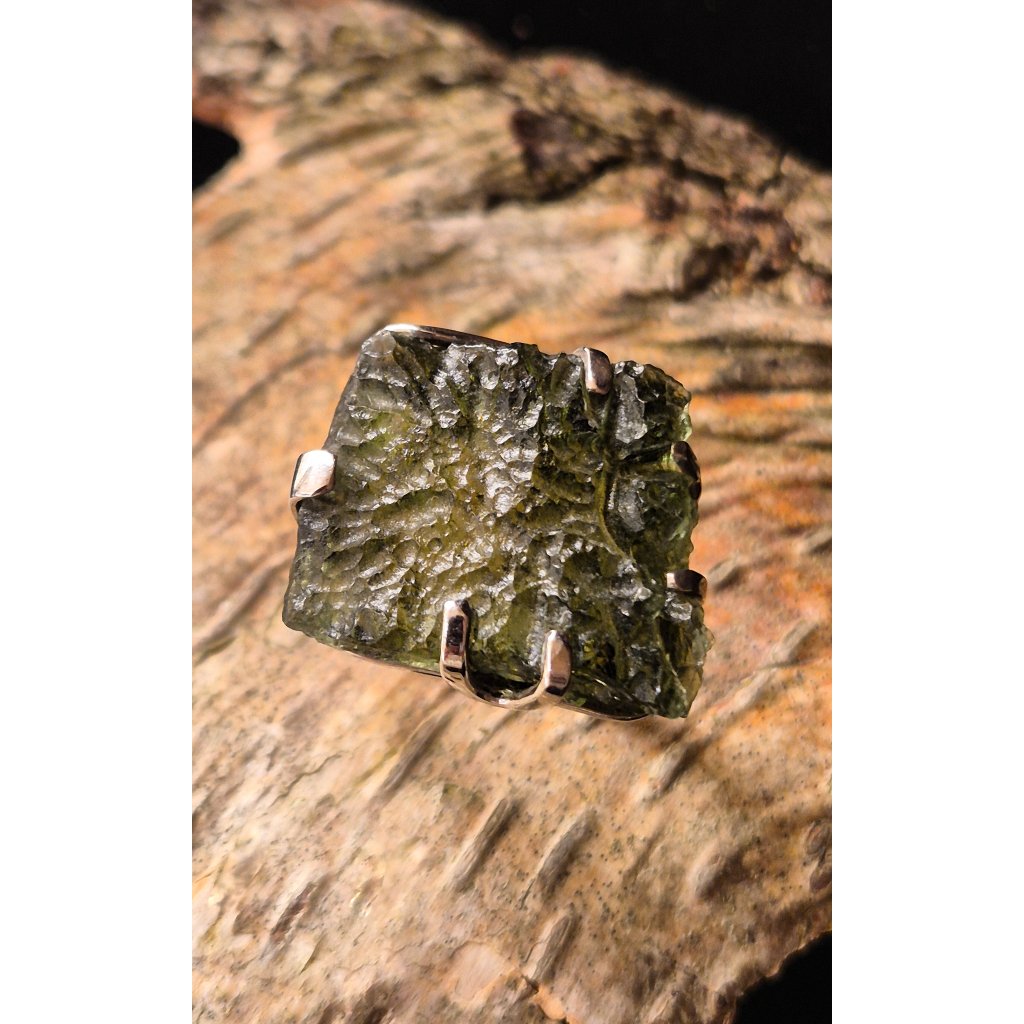 Krásný prsten s přírodním vltavínem, který vynikne v každém okamžiku. Přírodní vltavín, který vypráví svůj příběh… Originální design z ČR, skvostný doplněk pro každou událost.