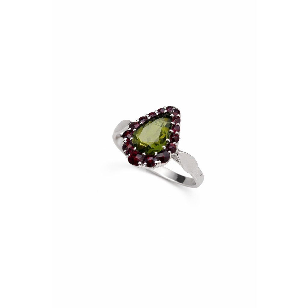 Stříbrný prsten s vltavínem a granáty P30 0086