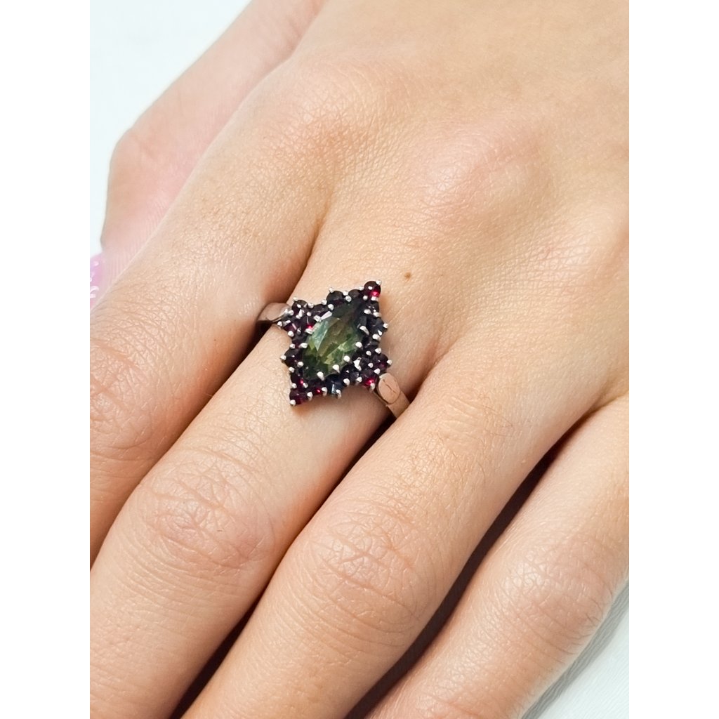 Stříbrný prsten s vltavínem a granáty P45 0006