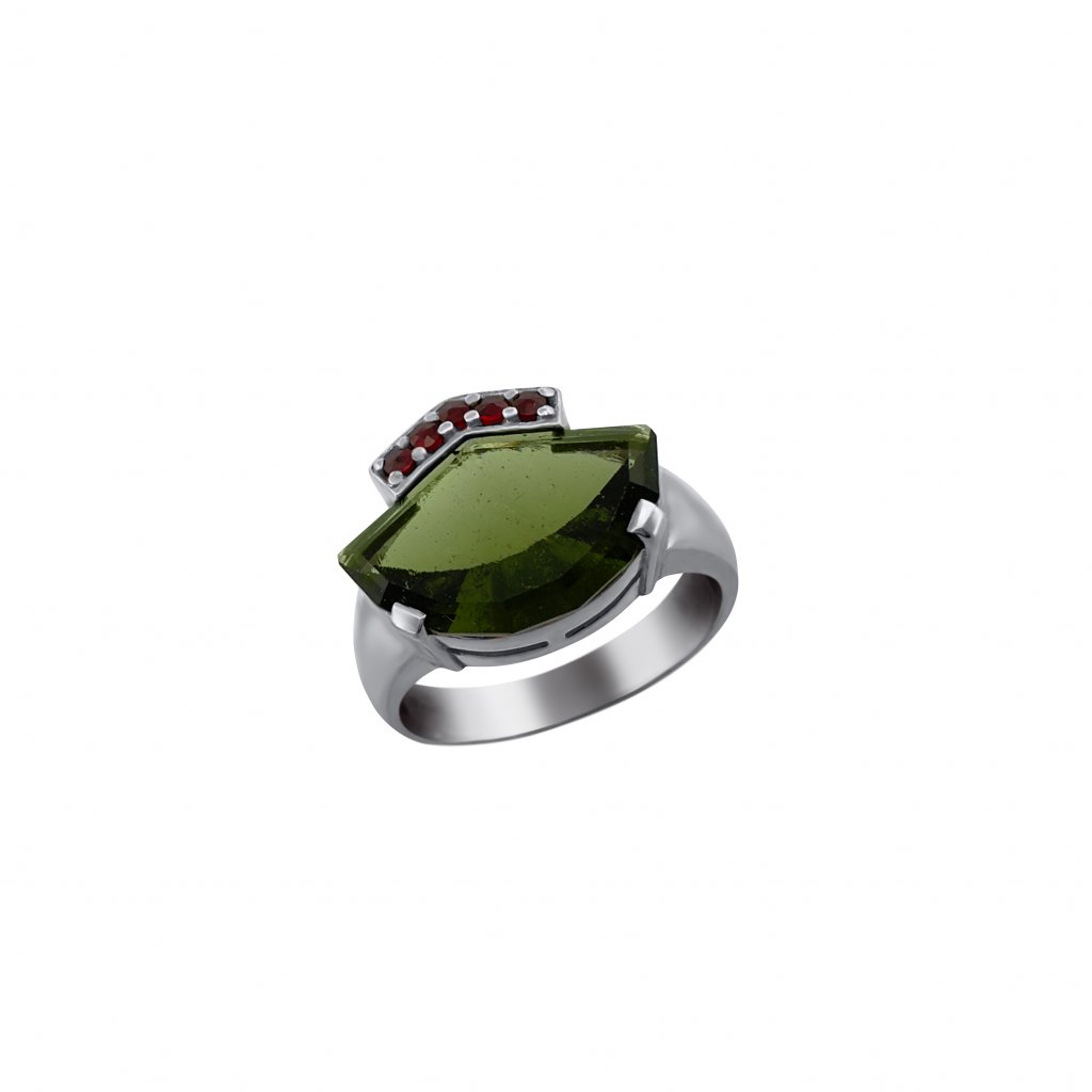 Stříbrný prsten s vltavínem a granáty P45 0040
