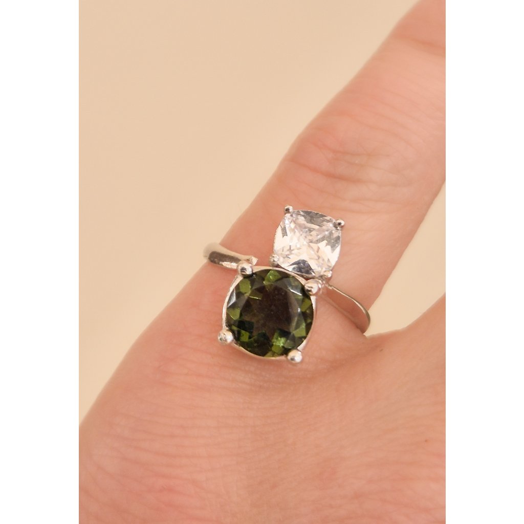 Stříbrný prsten s vltavínem a zirkonem P30 0044