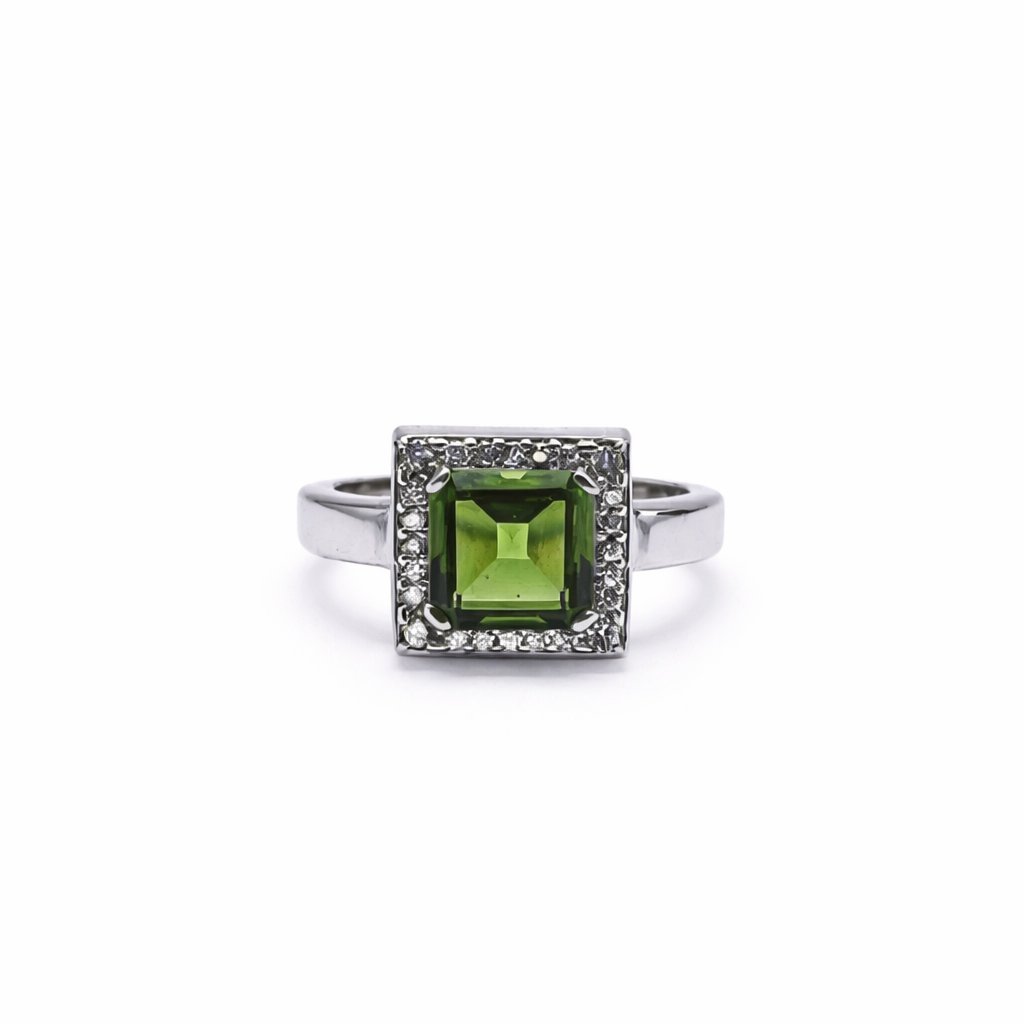 Stříbrný prsten s vltavínem a zirkony 2000289790003
