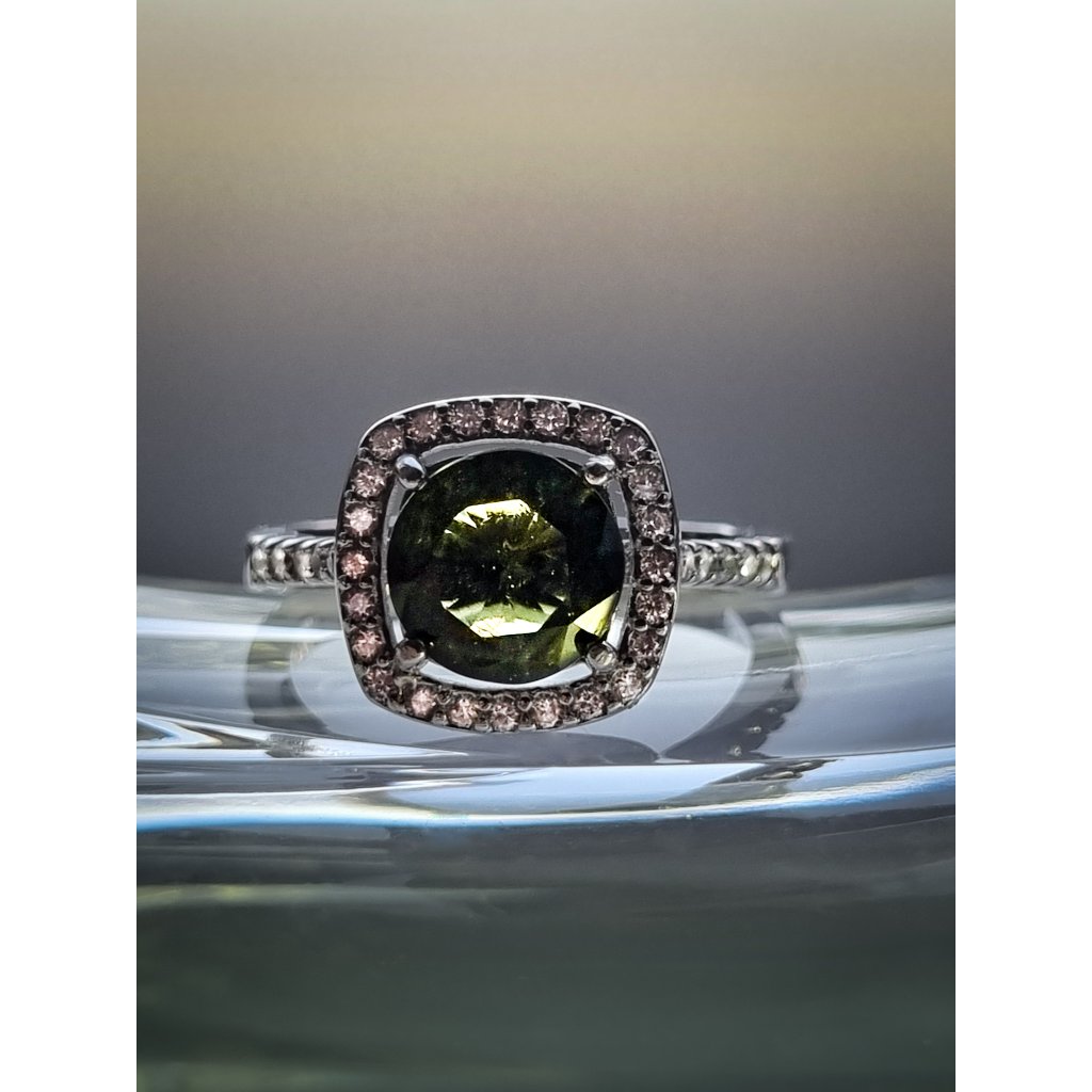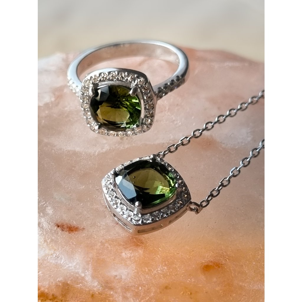 Vltavín a zirkony v tomto stříbrném prstenů tvoří dokonalou harmonii barev.