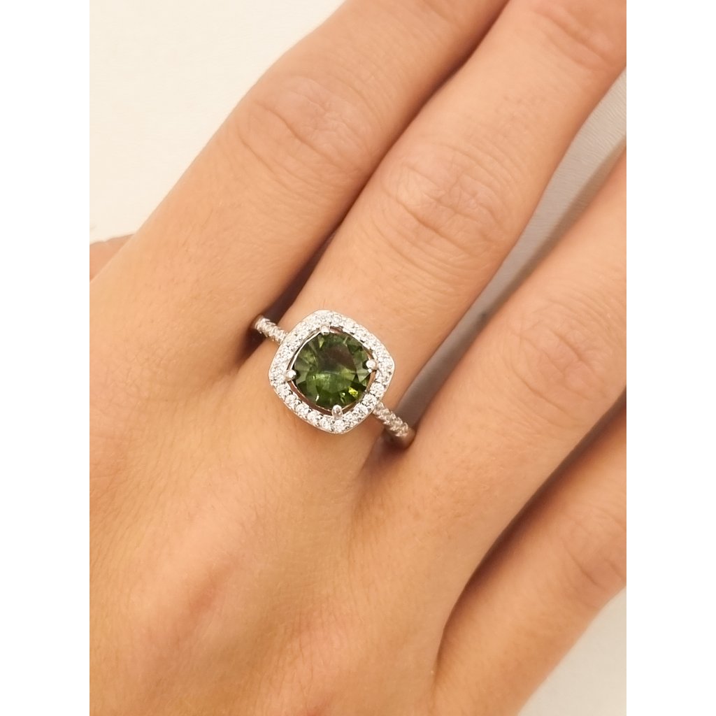 Stříbrný prsten s vltavínem a zirkony 2000342960008 /51, 54, 57