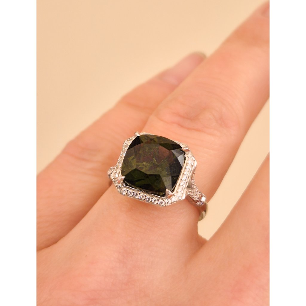 Stříbrný prsten s vltavínem a zirkony 2000352890005