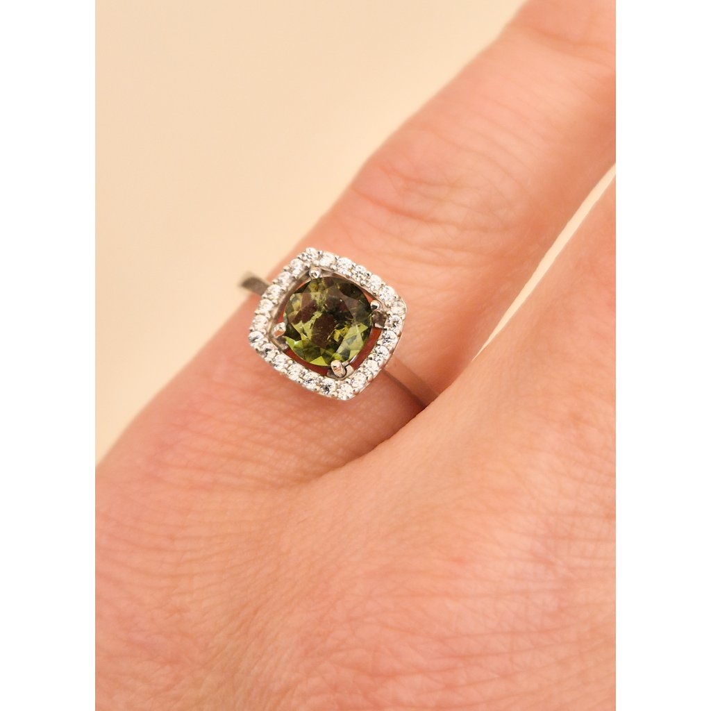 Stříbrný prsten s vltavínem a zirkony P30 0060