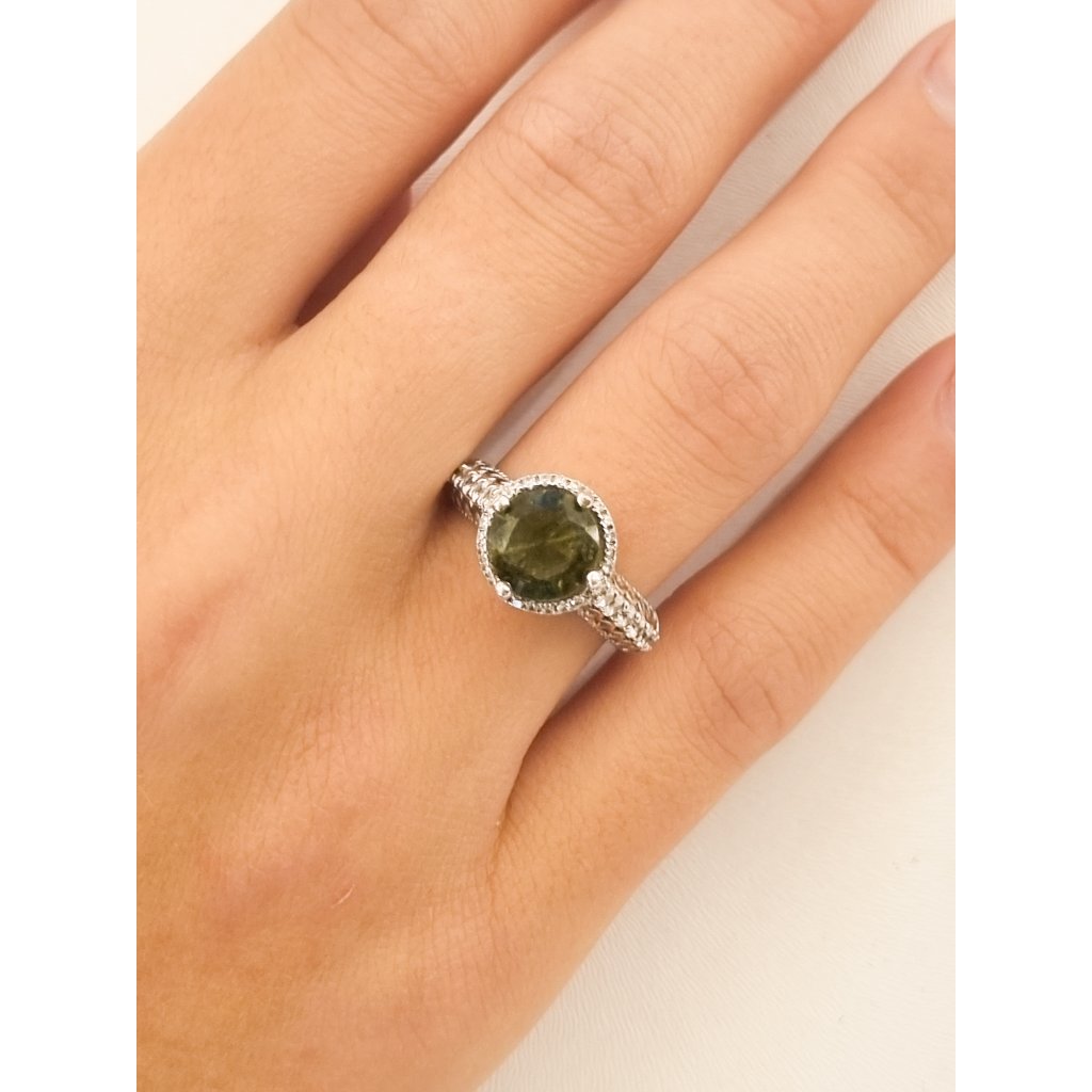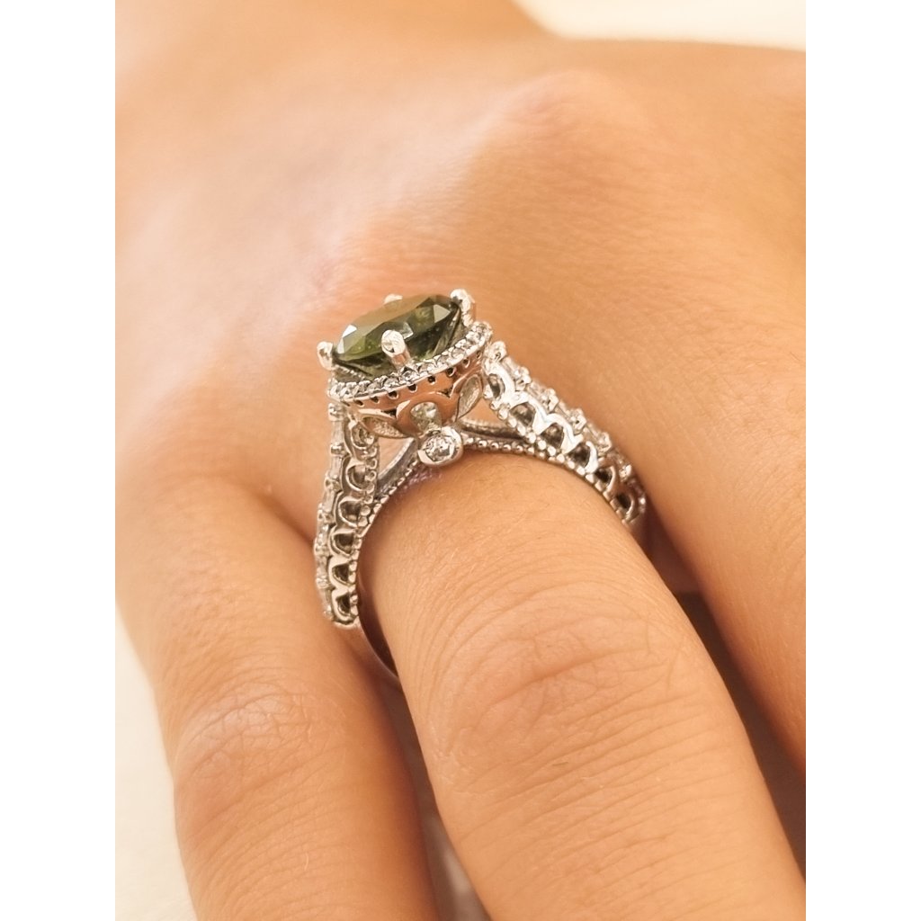 Přidejte do své sbírky šperků výjimečný stříbrný prsten s zářivou krásou vltavínu a zirkonu.