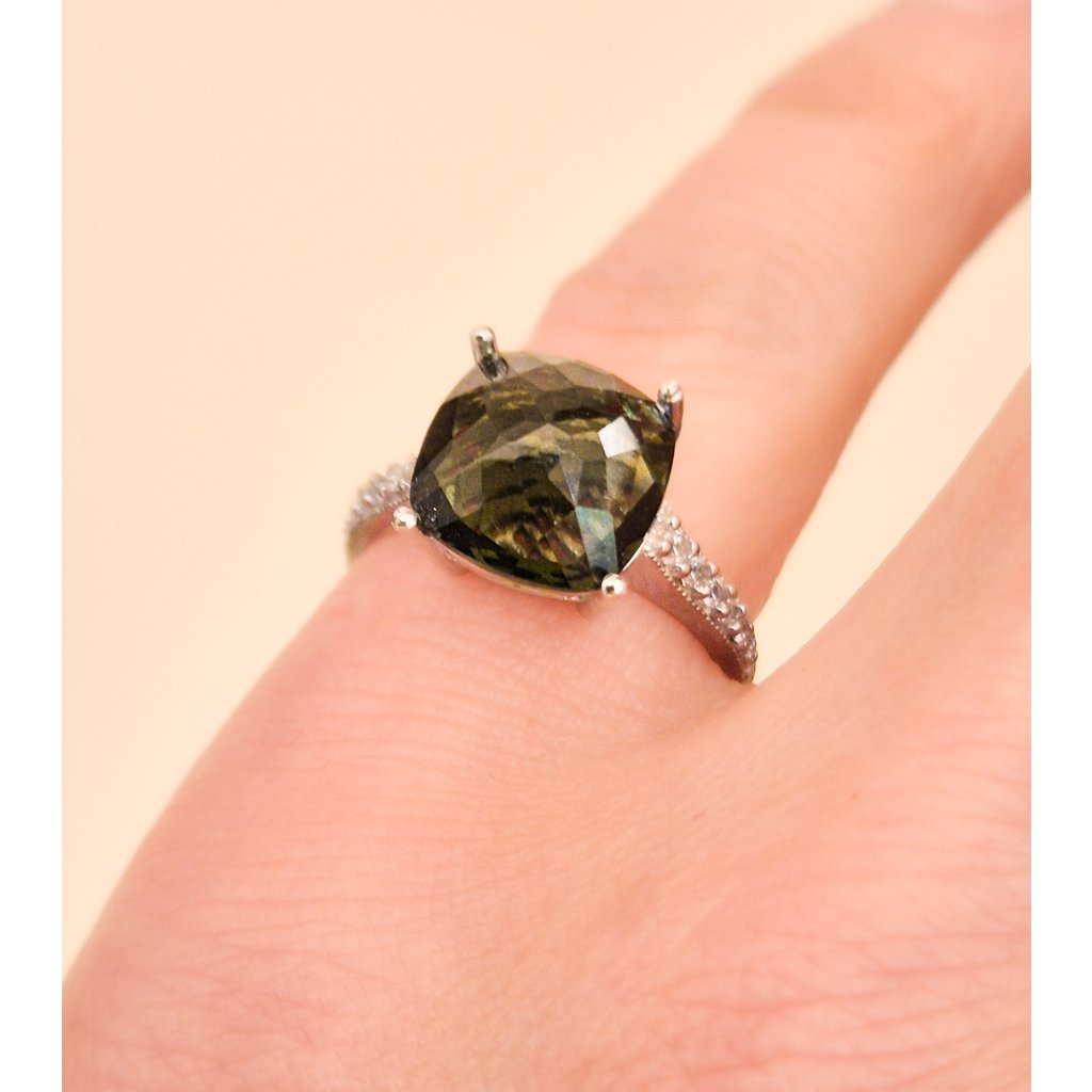 Stříbrný prsten s vltavínem a zirkony P30 0062