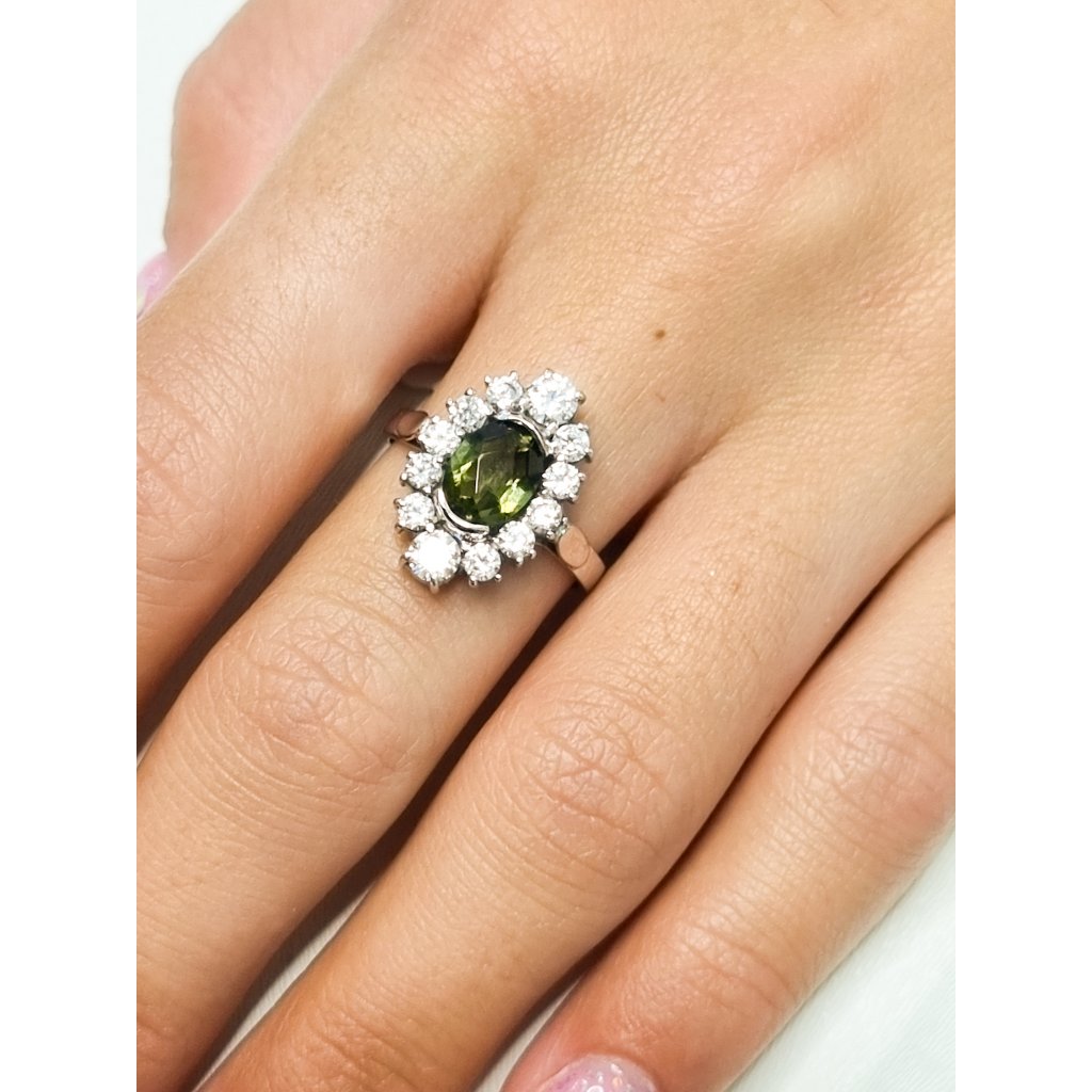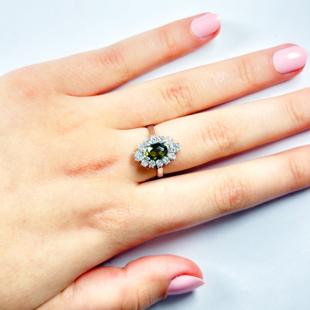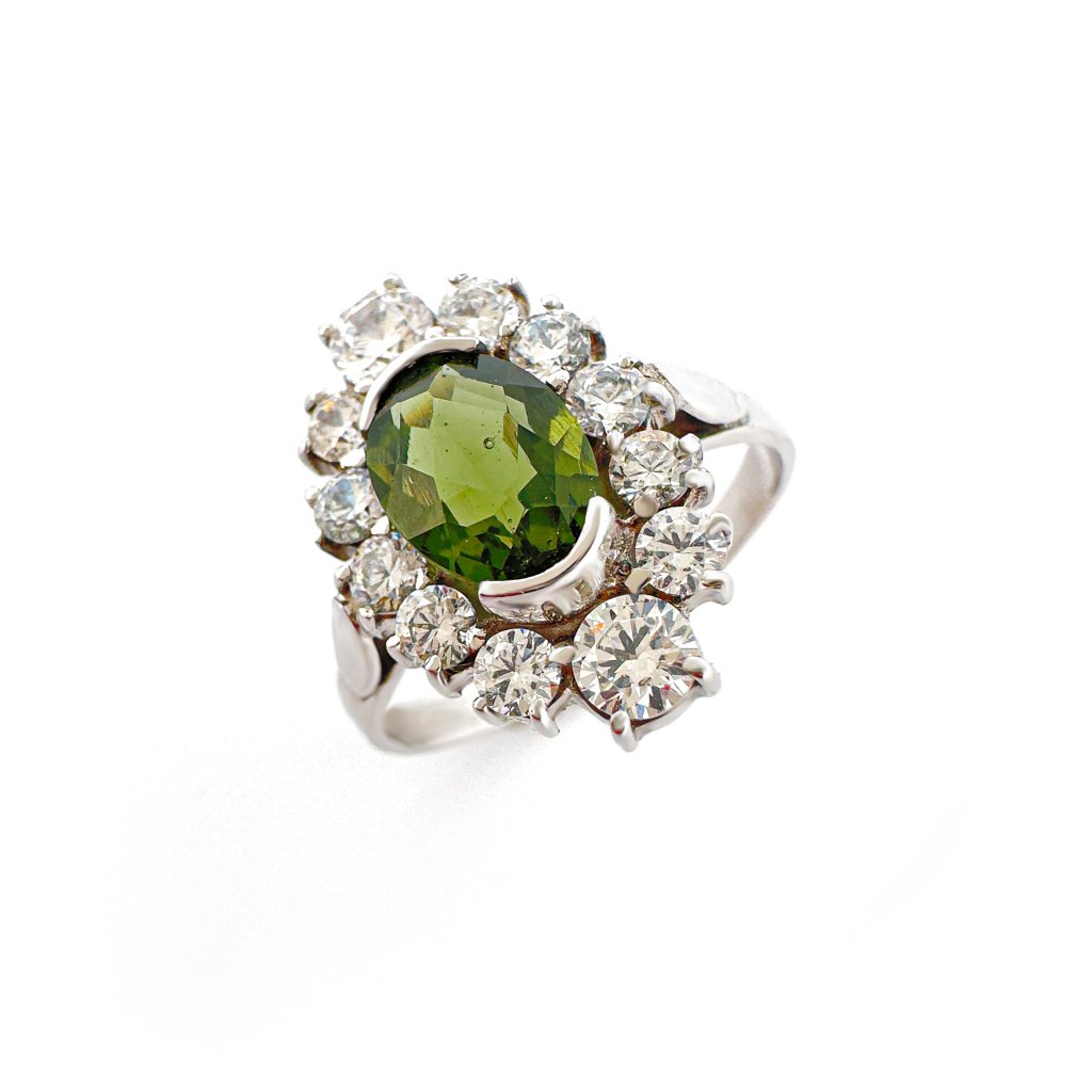 Stříbrný prsten s vltavínem a zirkony P45 0034