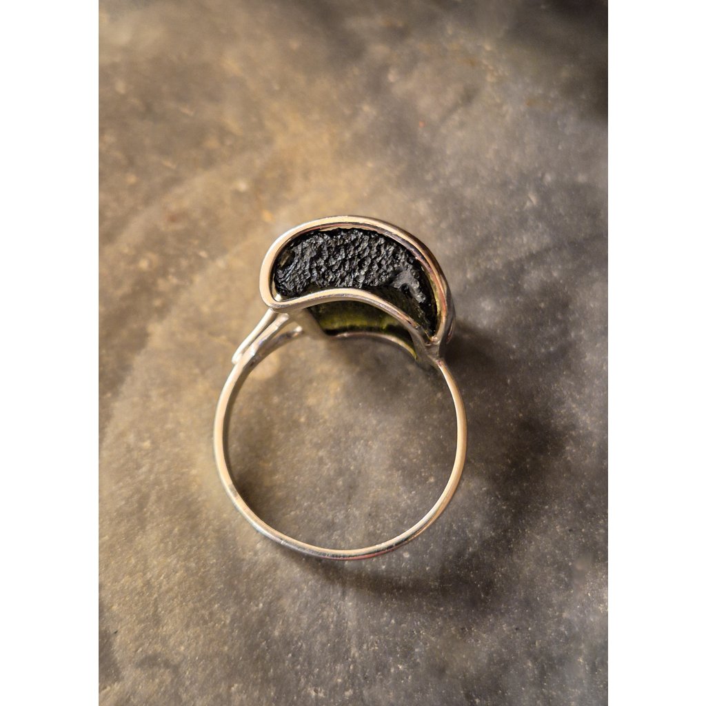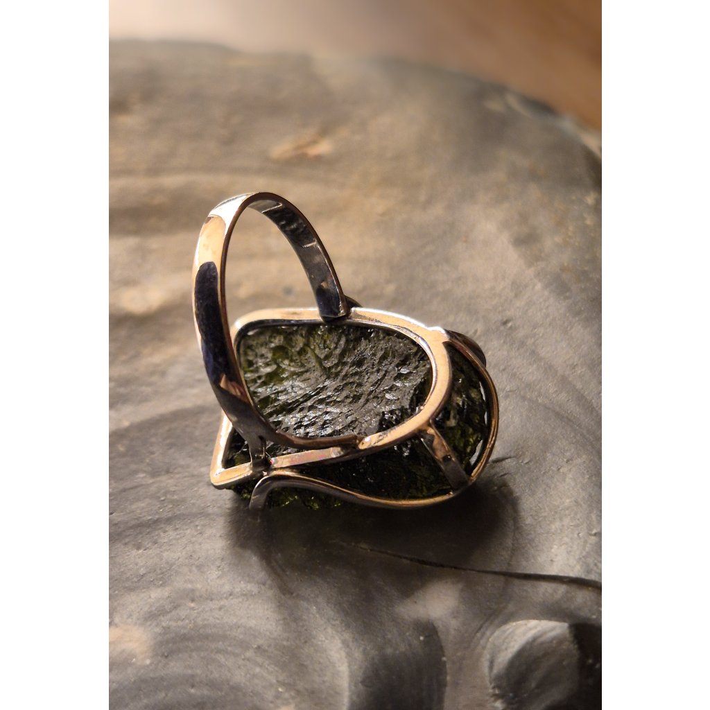 Nádherný stříbrný prsten s pravým vltavínem – dokonalý klenot pro milovníky drahých kamenů.