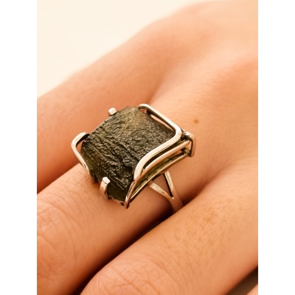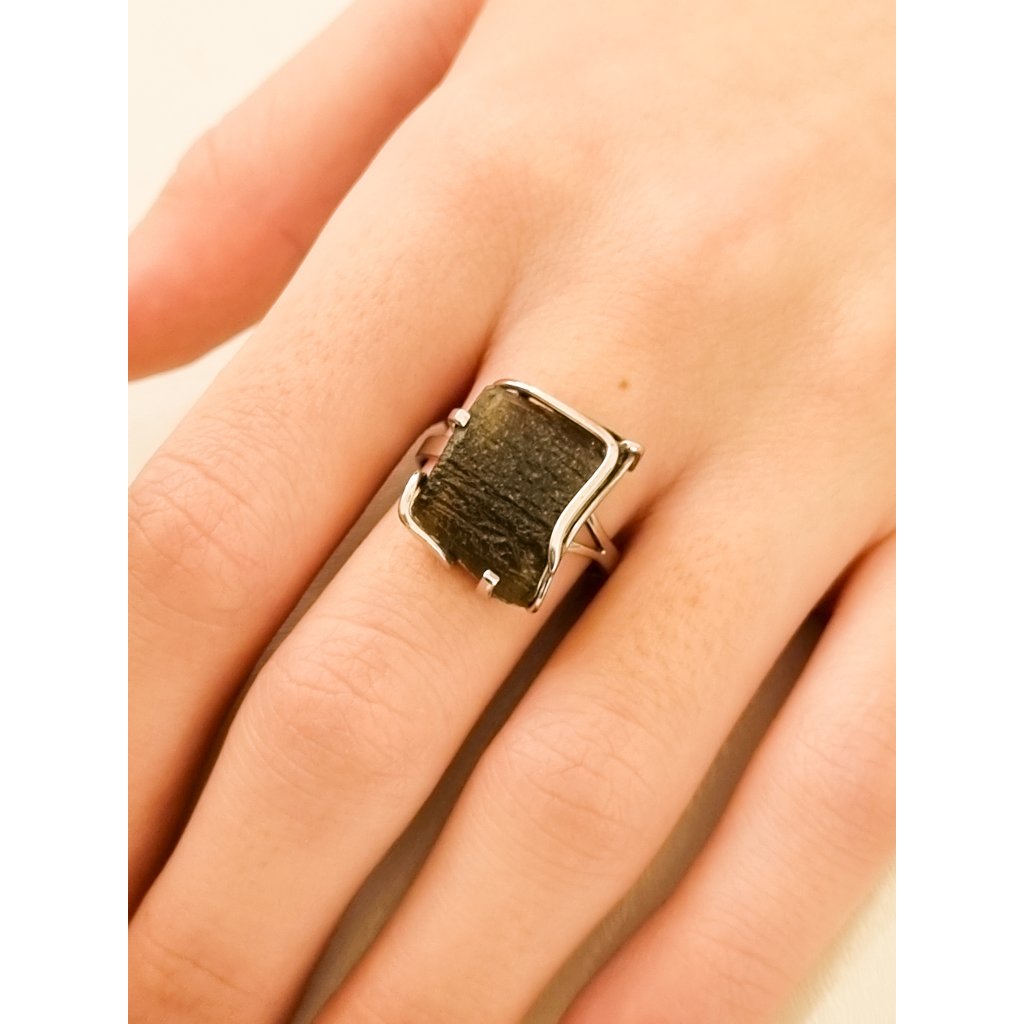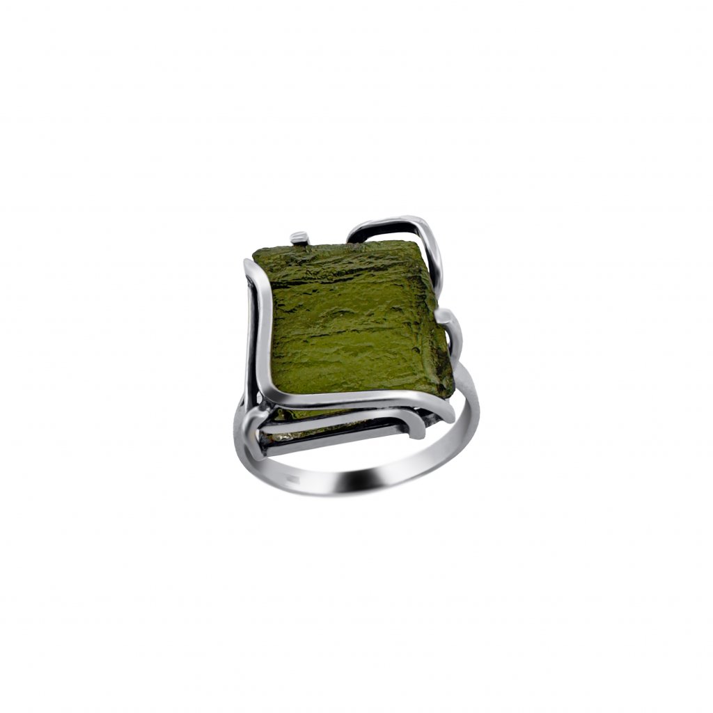 Stříbrný prsten s vltavínem P35 0043