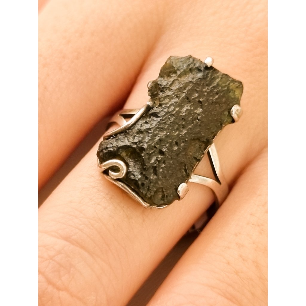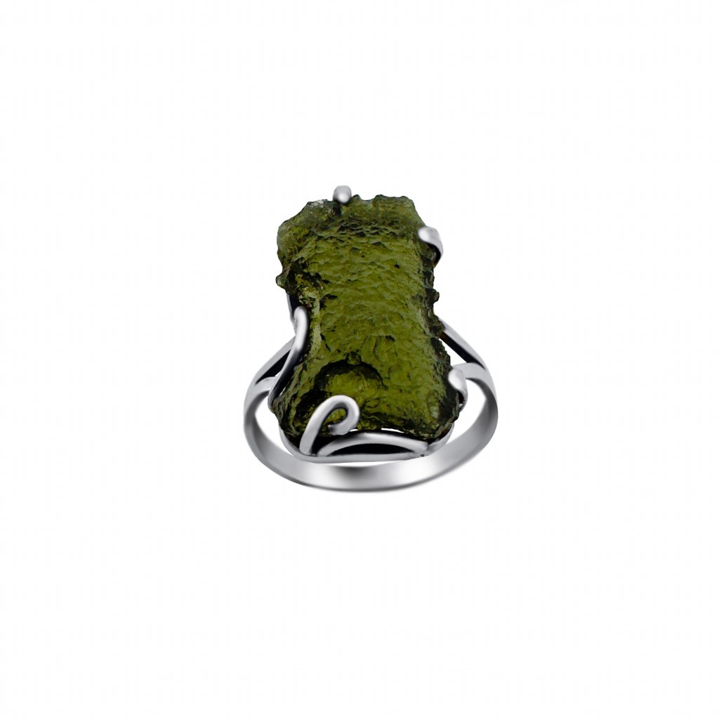 Stříbrný prsten s vltavínem P35 0056